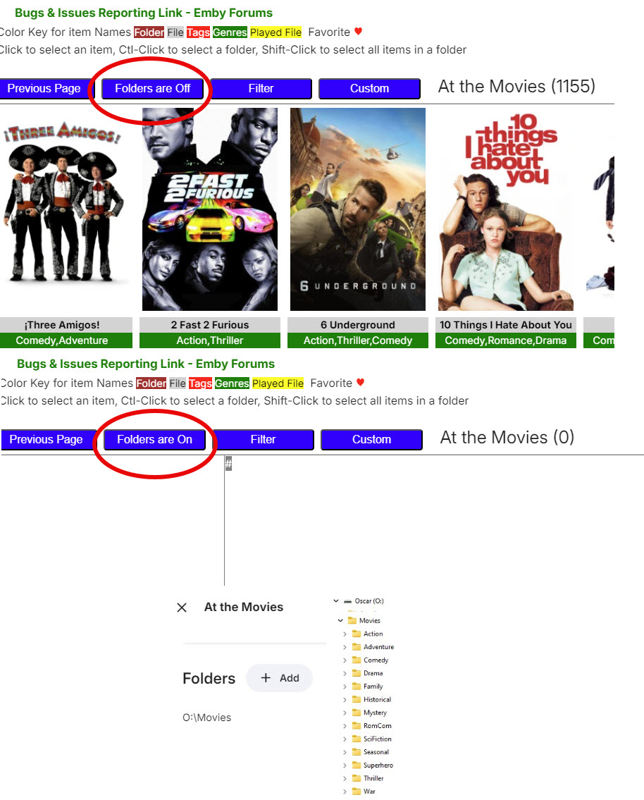 kbeck 64 Posted August 4, 2025 Posted August 4, 2025 If anyone has the problem with Folders on and only seeing a hash symbol instead of files (#), I found a workaround. My Library has 1 main folder, with about a dozen sub-folders and then the movie folders under them. I created an empty folder in the root of the Library folder, added it to the Library and everything shows. I:\Animated Shorts (Library points to here) I:\Animated Shorts\Looney Tunes I:\Animated Shorts\Looney Tunes\Folder1 I:\Animated Shorts\Looney Tunes\Folder2... I:\Animated Shorts\Disney I:\Animated Shorts\Disney\Folder1 I:\Animated Shorts\Disney\Folder2 I:\xTest (Empty folder. Added to Library) 1