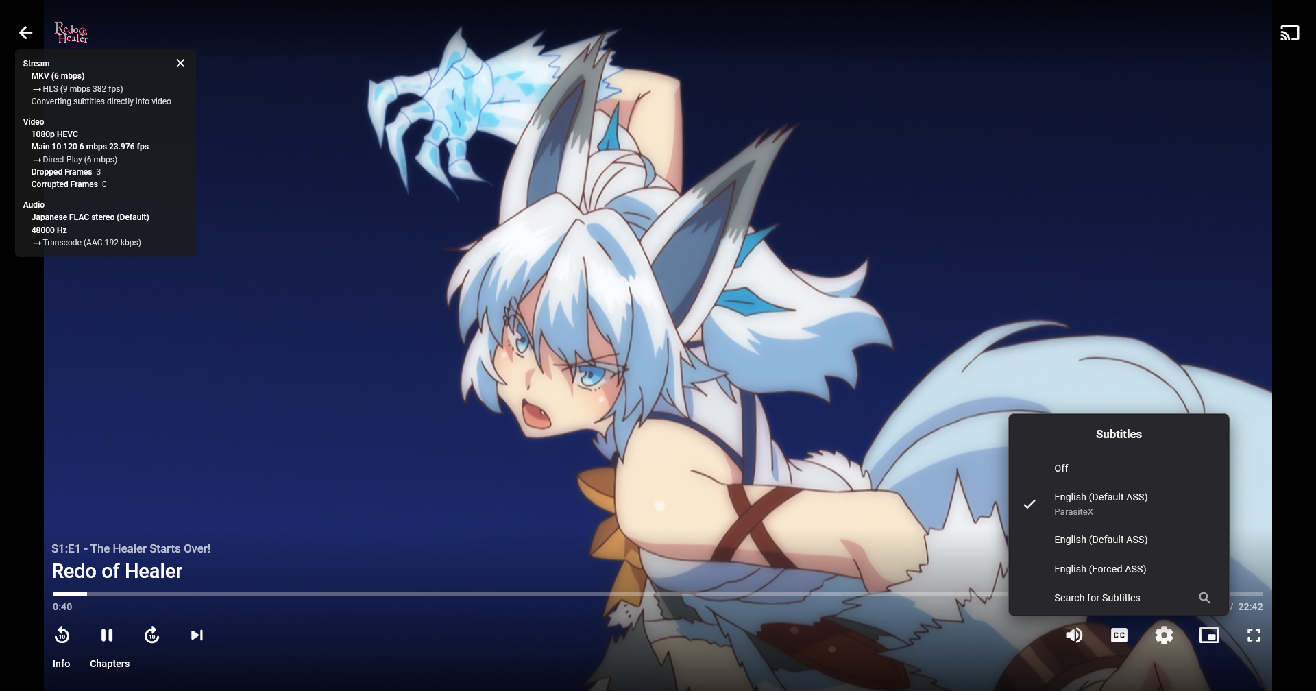 pwhodges 2012 Posted June 8, 2023 Posted June 8, 2023 As I said, allowing Emby to extract the subs will lose the fonts and maybe more. I would never recommend allowing Emby to extract ASS subs (or any, in general), nor using external ASS subs. The various Emby clients other than the web client will handle embedded ASS subs just fine, so long as they are not extracted by Emby. When transcoding, the burn-in option also ensures that they work, and this covers the web client issue. The greater part of my viewing is anime, and I have kept pushing for this to work smoothly, and now, for me it does. It may be that you have to install the diagnostics plugin so that you can select the right burn-in option; I'm not sure, because when I uninstalled it, the subs continued to work, but that might just be because the settings are currently persistent (in some earlier betas they were not) - but in any case I recommend you install it and enable the settings I have. (I'm a bit puzzled that now subs are IME working so well, the code that makes it happen is still not being fully released.) Anyway, just to see if there was anything odd I downloaded the exact file I presume you are using in your examples, the [CUNNY] encoding of Redo of Healer (I'm amused that the series concerned gets the worst reviews I have ever seen for any anime!), and as they come the embedded ASS subs show perfectly when direct playing in the Android, iOS, and Windows clients, and when transcoding (and hence being burnt in at the server) in the web client. That's with the settings I listed earlier, and no external files at all. But if your machine can't handle transcoding, then you'll be out of luck with the web client whatever you do (other than burning in the subs in advance using HandBrake). Paul
