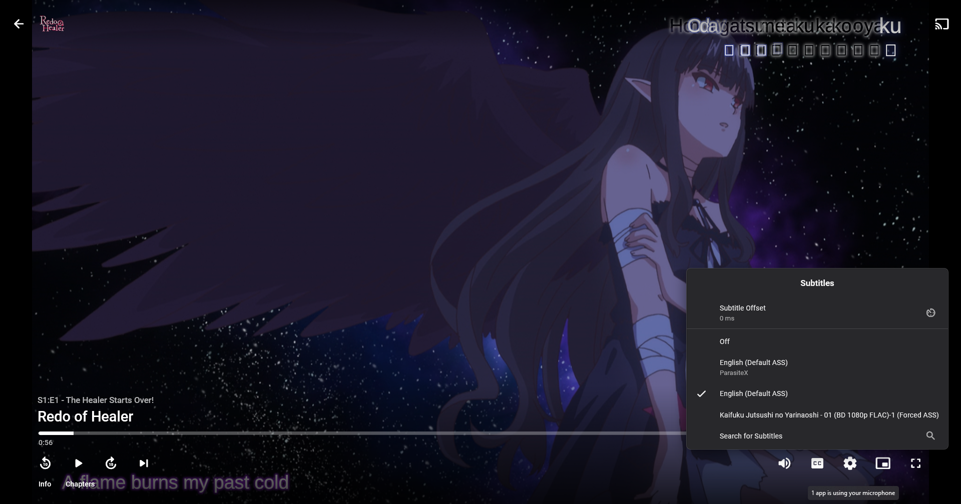 justmeyep 5 Posted June 5, 2023 Author Posted June 5, 2023 47 minutes ago, pwhodges said: The fonts required for those subs are: DFKai-SB (for the Japanese karaoke), Monotype Corsiva (for the romaji/English karaoke), Vesta (for the main subs); they are not provided as attachments in the video (at least, the supplied sample), which is bad practice. I have attached a zip file with these three fonts in. First of all thanks for the great insight once again! I think you forgot the attachment though. Also how can I check whether the files are supplied with the original video file? Is that possible with MKVToolNix(GUI)? I took a quick look but couldn't really find what I was looking for. 50 minutes ago, pwhodges said: The fonts need to be on the machine where the ASS subs are rendered - i.e. the client if direct playing or the server if burning in. (I have video transcoding disabled) I assume if the fonts are bundled with the video file, the Emby player will still not display them when direct playing? 53 minutes ago, pwhodges said: If the fonts are not found, I don't know how Emby decides what alternatives to try. Playing the sample directly (not through Emby) on my Windows machine without those fonts, I get all the characters, but ill-proportioned (like the English in your example above, but including the Japanese characters). I have the same behaviour with the default Windows 11 player. However mpv (and Plex) seem to play them correctly. I assume this means they have the correct subtitles bundled with them or have better fallbacks? I really appreciate the help!