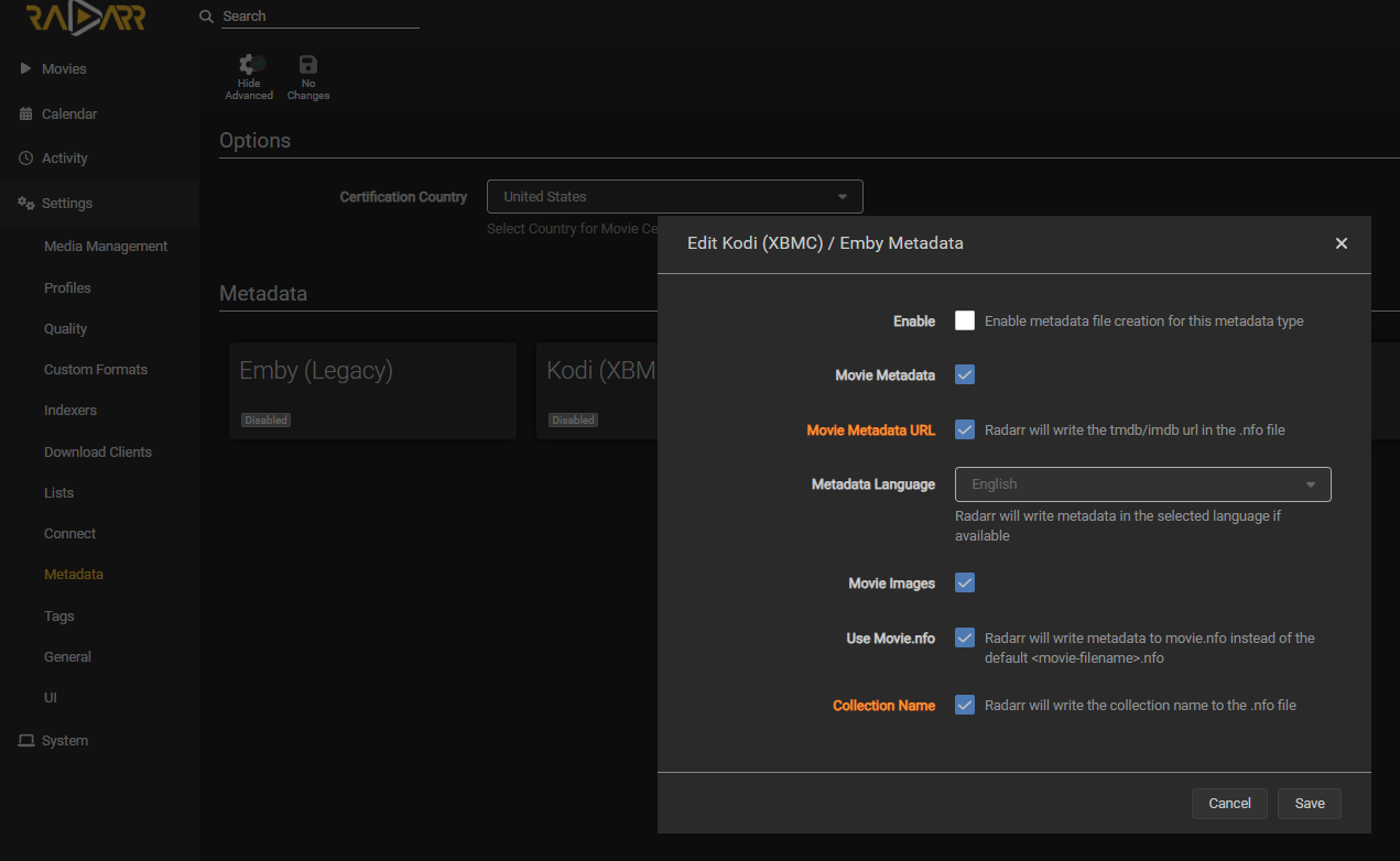 Przemek 70 Posted July 11, 2023 Author Posted July 11, 2023 2 hours ago, GrimReaper said: That sounds like some mixup with Radarr: do you have Radarr writing NFOs? How about Emby connector enabled? Hi, my Emby connection in Radarr work fine. But don't know if Radarr write .nfo files. I find only checked option to import extra files: .SRT, .nfo, .sub.