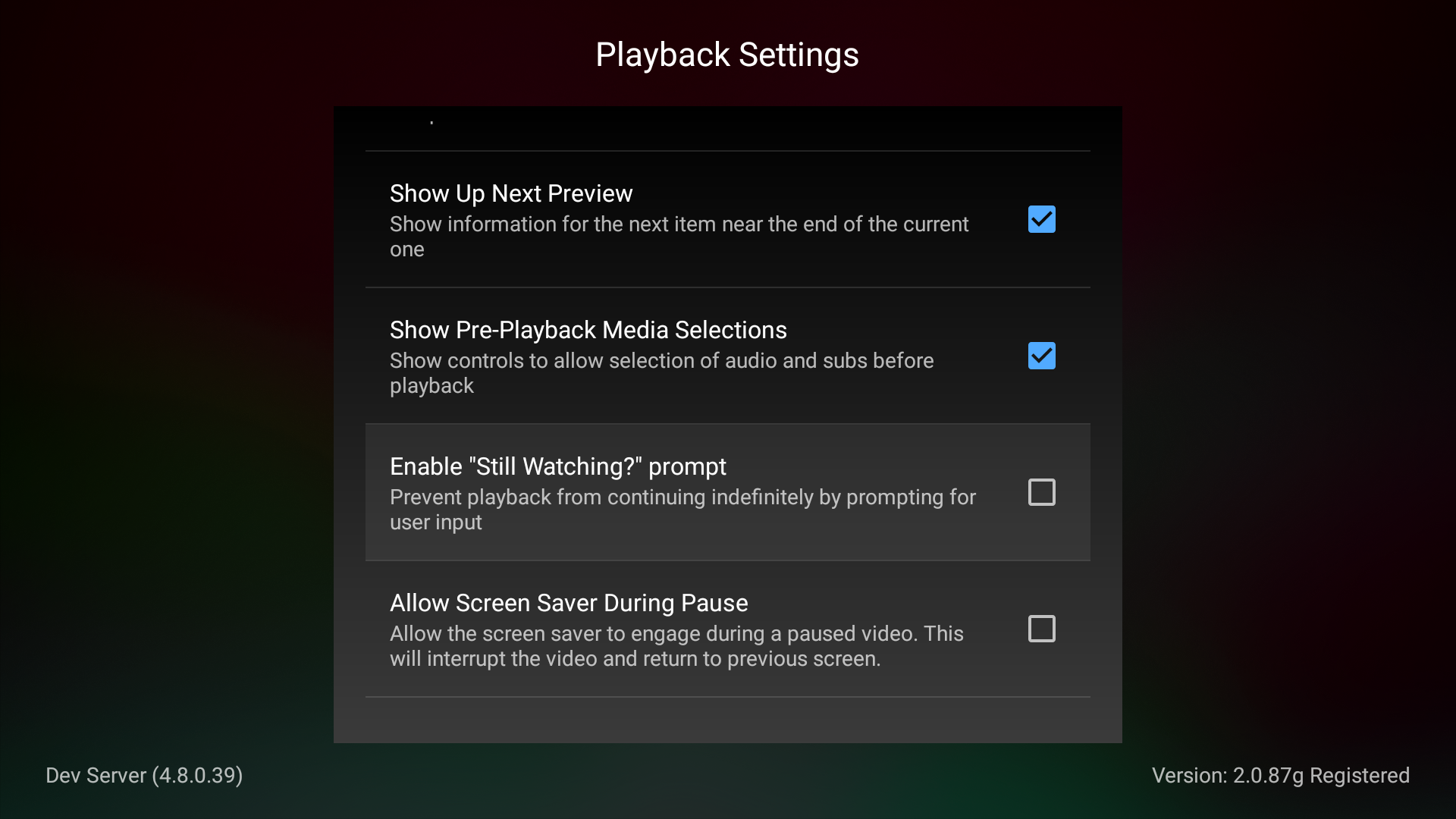 Tankerhank 9 Posted July 1, 2023 Posted July 1, 2023 Running 2.0.83g on the Nvidia shield (both models) Server is up to date. Just updated it the other day. To limit continuous play I have the "Are you still there" checked in the server, it use to show up on the Nvidia Shield (cigar tube) but no longer does. It never showed up on the Nvidia Shield Pro. I don't use emby on my phone or tablet so have never checked if it shows up there. Any idea what to do?