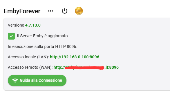 pwhodges 2012 Posted July 13, 2023 Posted July 13, 2023 Sorry, I didn't look carefully... You' seem to have got the forwarding setup wrong (I'm surprised the router even allowed your settings). In your port forwarding there are three columns: Porta WAN, Porta LAN, Destinazione. You have set Porta WAN correctly to 8096; however, you have put the internal IP address into the Porta LAN field - this field should also contain 8096; Destinazione should contain the IP address. You only need to set up the 8020 mapping if you have a certificate and are using https. If you have no other websites on this WAN address, you might consider making the Porta WAN values 80 and 443 respectively - these are the defaults for http and https, and would save you having to type the port every time - it also reduces the chance that your server will be seen by a hacker looking for an Emby installation (they'll be looking for 8096 mainly). Paul