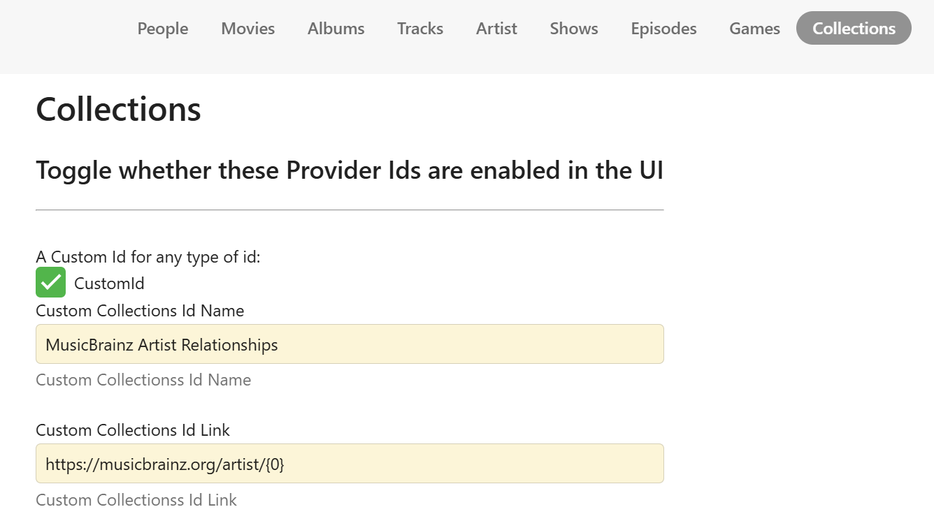 deepac7 9 Posted February 3, 2025 Posted February 3, 2025 On 14/07/2023 at 23:57, mickle026 said: This is an Alpha version so far. - Check the last posts for the latest version What it does is allow you to add external links like this, to people, movies, tv shows, episodes, albums (including audiobooks) , artists and games It has not been extensively tested!!! and is still a bit rough round the edges with no real instructions I have not documented anything yet However you can use shortened urls / redirectors etc !!! For security reasns please bear in mind that external links can be hijacked, malicious code injected etc so please verify your sources before adding them to your server !!!! It has some custom fields too so you can create your own links Its is no where near finished, there is still a lot to do, its jsut posted here for testing for now. Provider_Ids_Extender(12Aug2023).zip 268.8 kB · 85 downloads 18-02-2024 Update Added a few more Ids and a section for tracks - see thread for details (page 3) Provider_Ids_Extender(18-02-2024).zip 457.95 kB · 17 downloads 19-02-2024 Update Fixed typo is Custom Id 3 of Artists Added Generic Youtube url to artists (so now can either add channel or generic youtube url - youtube.com/{0}) Added Amazon to Albums and Artists Provider_Ids_Extender(19-02-2024).zip 478.52 kB · 53 downloads @mickle026Do I simply extract and copy this folder to plugins folder? Or should I do anything else?