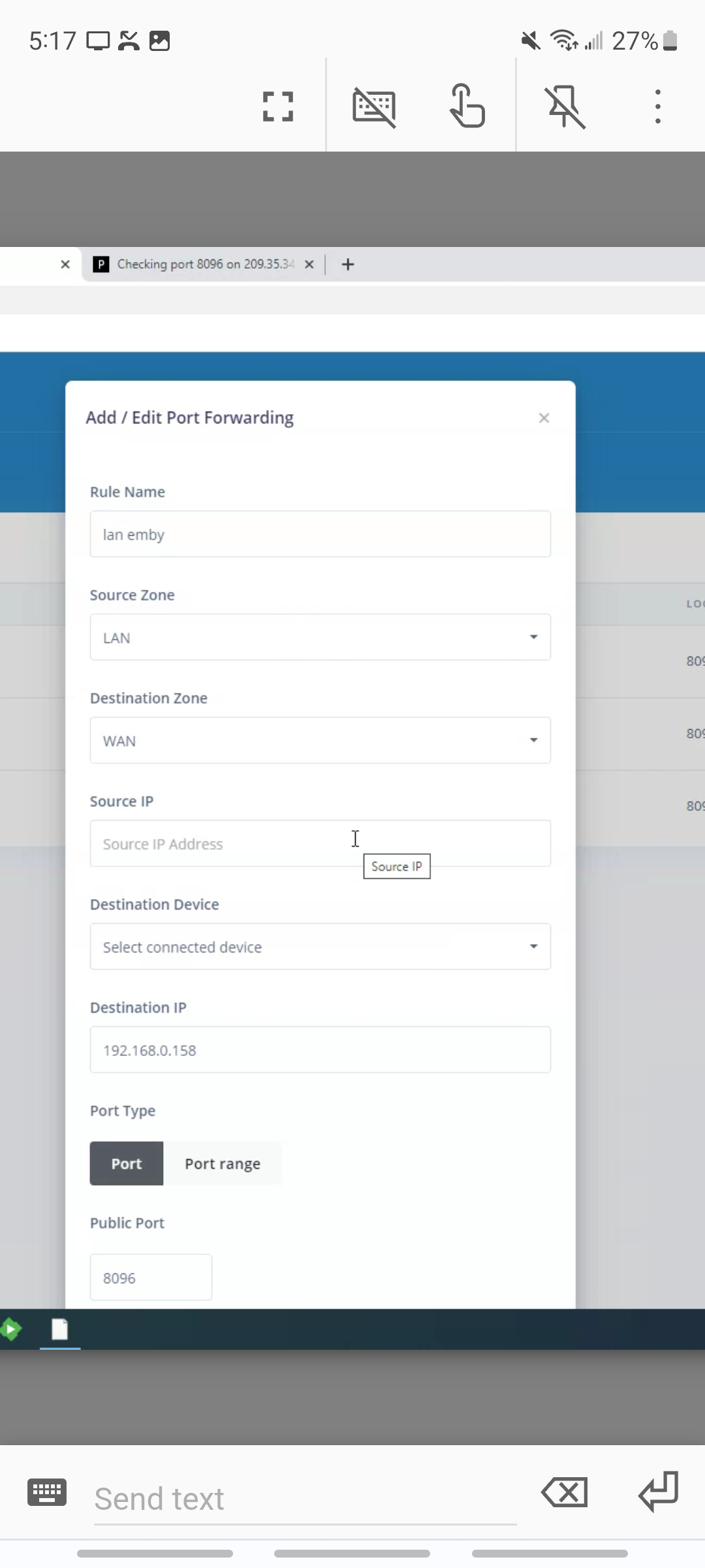 luifrans3 3 Posted July 19, 2023 Posted July 19, 2023 Hello, I am trying to setup port forwarding on my server, it hasn't been working on a WAN connection. When adjusting the settings for port forwarding I get the following fields to input and filled it in. Source Zone: WAN Destination Zone: LAN Source IP: (my current IP address) Destination Device: (drop down menu with devices connected to local Network, selected server) Destination IP: (auto fills when the destination device is picked, not to current IP address but the in home LAN access number emby has. Port Type: (Port or Port Range, selected Port) Public Port: 8096 Protocol: TCP Local Port: 8096 I then get an error message saying the following: Duplicate port forward entry. At most one enabled entry in this table can exist with all the same values for name or source ip, start of public port and protocal. Not sure why it isn't working, any help would be appreciated, thanks.