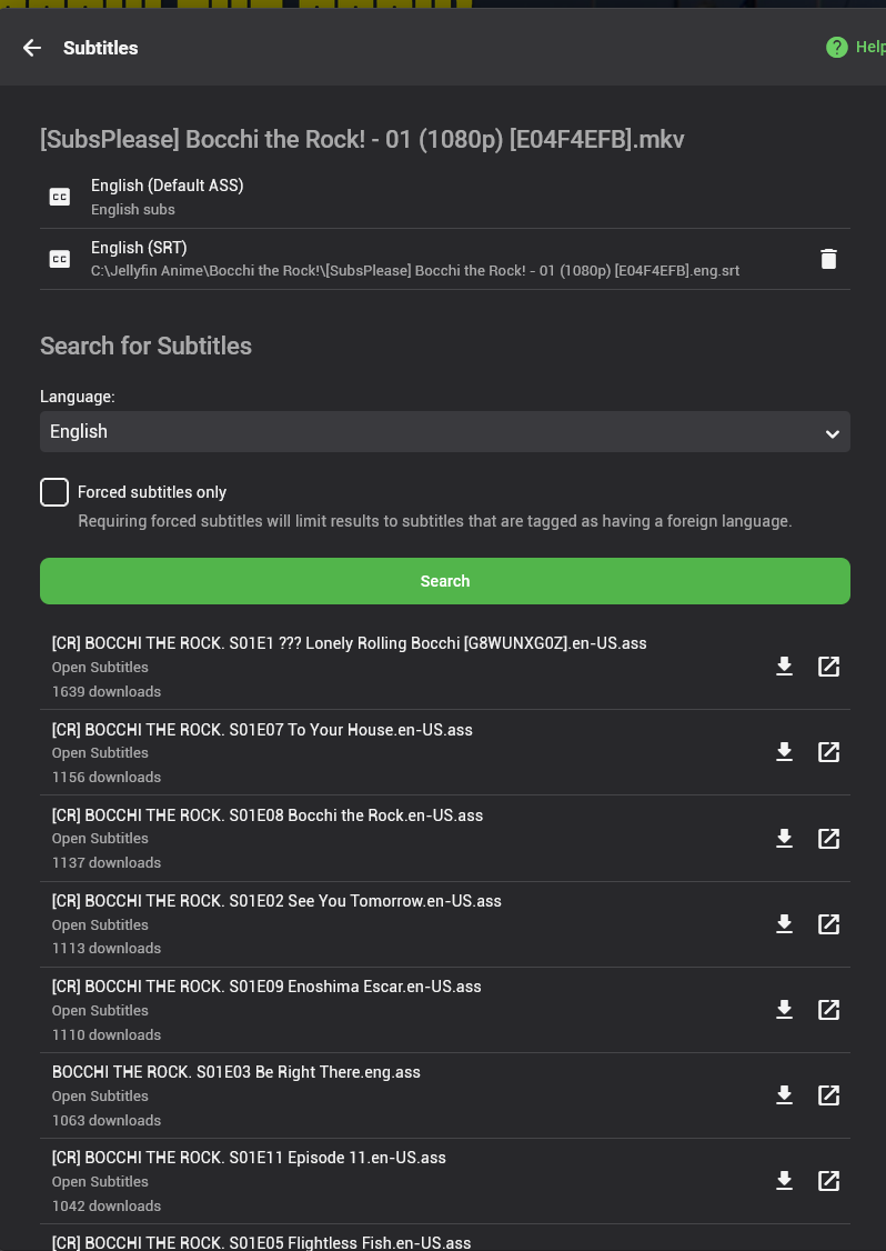 Wezzor 0 Posted July 25, 2023 Posted July 25, 2023 Hey! As the title says, I can't find subtitles in .srt format for my anime content, but somehow it works when I do it on Jellyfin? I have tried it now on multiple anime with the same issue. Emby just show me subtitles in .ass format, while Jellyfin in .srt which I prefer because then I can use Emby's inbuilt subtitle appearance. I'm starting to give up here, so any help would be really appreciated This is how it looks: Â