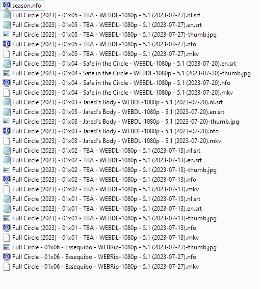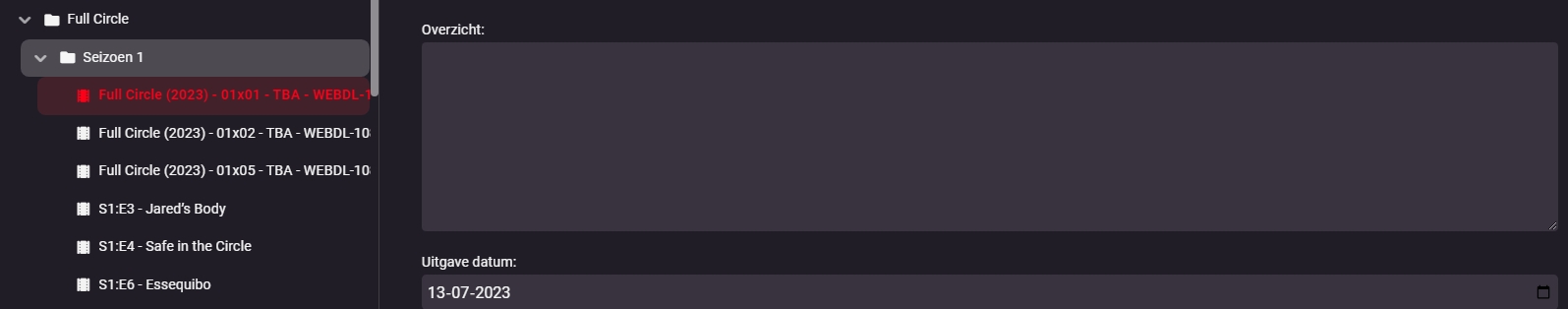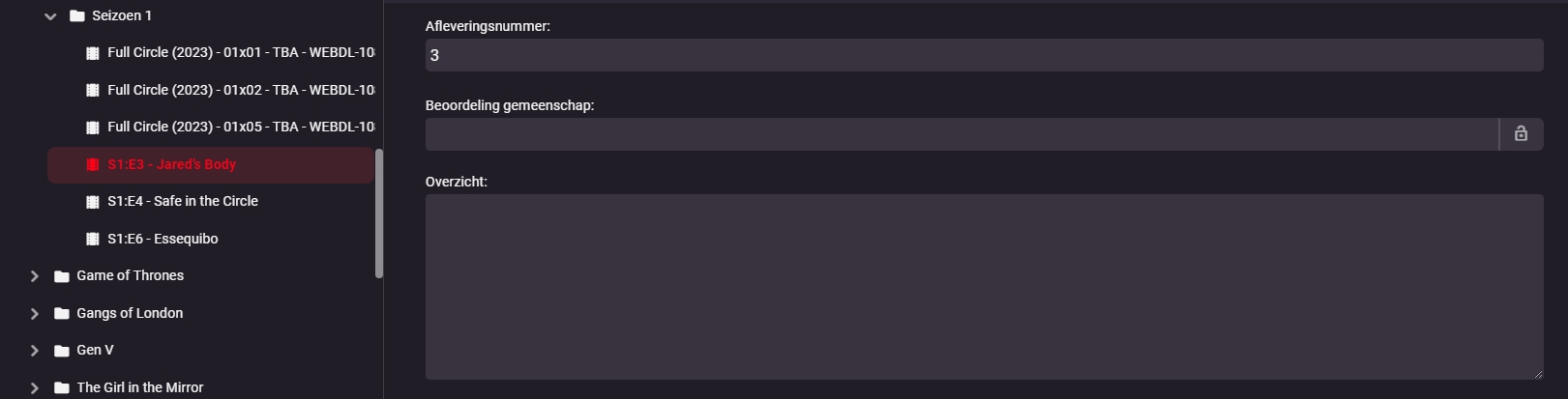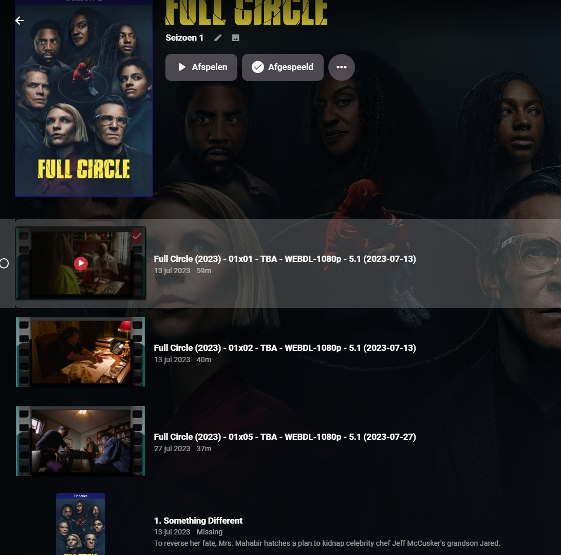 heula 192 Posted August 5, 2023 Posted August 5, 2023 (edited) I've seen this for much longer than today, but since I really use Emby and no longer Kodi, it also bothers me more than this problem occurs. I then notice, for example, that the repetition of playback is not correct. So I watched episode 1 of Full Circle this morning and the next episode will be episode 3 according to Emby. This while episode 2 is still available. Some results do not display properly in Emby after being placed in the correct folders by Sonarr. Some episodes go well and others don't. The naming of the files doesn't seem to be the problem when you look at the similar comparisons below. Besides this problem I also notice when new events are recognized by Emby and are playable they don't have all the metadata like the overview. Here too, it does not make the representation in Emby correct or incorrect in terms of name. This can sometimes be resolved by manually refreshing the metadata. This does not help with the example of Full Circle. I have indicated in the settings that the metadata must be Dutch. Now I don't know if this automatically becomes English when Dutch is not available, but it would be nice if that option could be added. A second language as a backup. I hope that the attached pictures sufficiently indicate where the problem is and that it can also be solved? Emby server for Synology 4.8.0.39 Thank you. embyserver.txt Edited August 5, 2023 by heula added another image