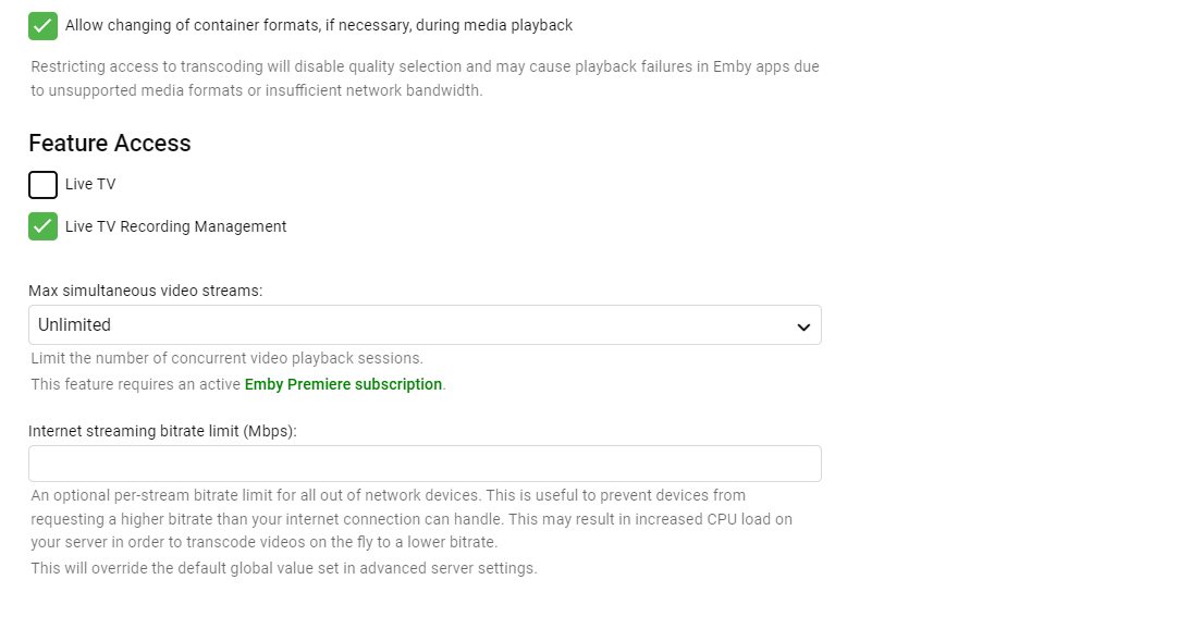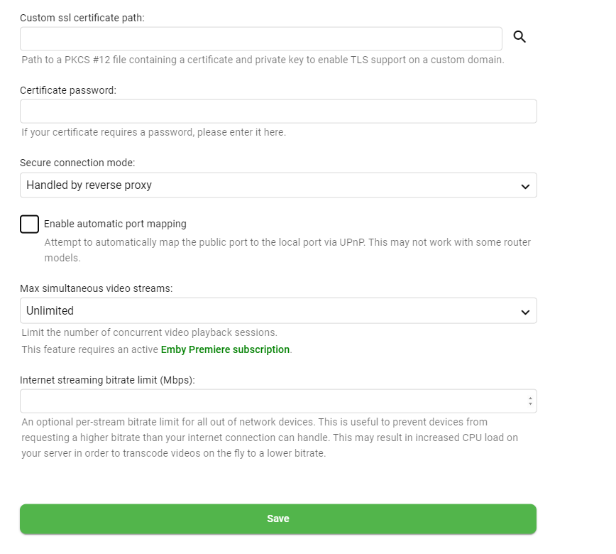 Q-Droid 989 Posted August 8, 2023 Posted August 8, 2023 Restart Emby after you make the changes. Then test again and post a fresh server log. We want to make sure the LAN connections are seen as local. For remote connections (test on 5G) change the client app settings as I posted above. Set the playback quality to a value other than Auto. Emby limits by stream, not an aggregate. So it will limit the bitrate for the streaming media but it does not act on the network bandwidth. It only deals with the media stream itself and doesn't - can't - do anything to affect the available network bandwidth. For example 10 limited users would each get 3mbps, an aggregate of 30mbps if your network allows. If you are seeing something being throttled at the network then it's not Emby.