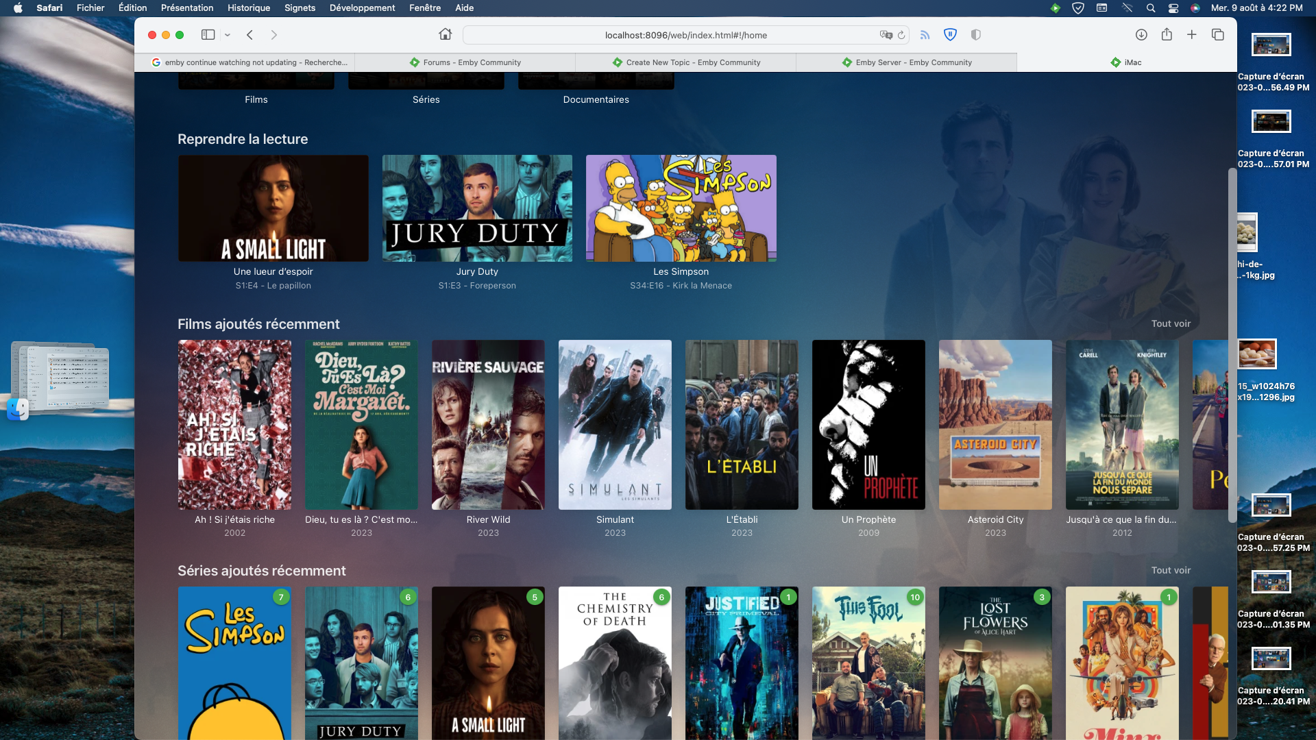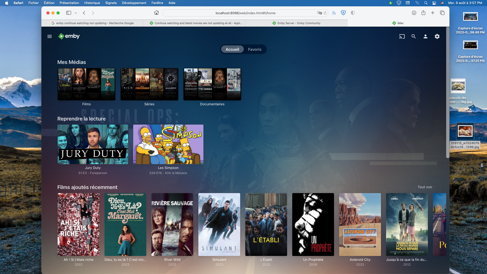 adrienbnch 1 Posted August 9, 2023 Posted August 9, 2023 Hi everyone. So, I've noticed something in the continue watching behavior and I would want to know if it's normal and if there is a way to control / correct it. Let's say I have a TV show (A small light in the screenshots) with a few episodes. If I watch some of them, from 1x01 to 1x03 then stop, I will see the 1x04 in the continue watching section on the homepage. Normal for now. The weird behavior is if I delete the episode 1x01 to 1x03, the 1x04 will then not appears anymore in the continue watching section. I tried that on 2 different server, Win11 and MacOS with the latest version of Emby Server and I have the same thing happening. If I put one of the previous watched episode (no matter if it's 1x01 or 1x03), then 1x04 come back in the continue watching section On the screenshot, you can see I have a lot of shows and the majority of them should appear in the continue watching section but since I have only unwatched episodes, they just don't. I tried with a few different show, I tried with a new library and it's always the same thing. -1st screenshot is before I delete the watched episodes -2nd screenshot is to verify the episode are still here -3rd screenshot is when I've deleted them -4th is when I put them back Is there a way to change that ? Edit : same issue happening with the next up (legacy) option for the homepage btw.