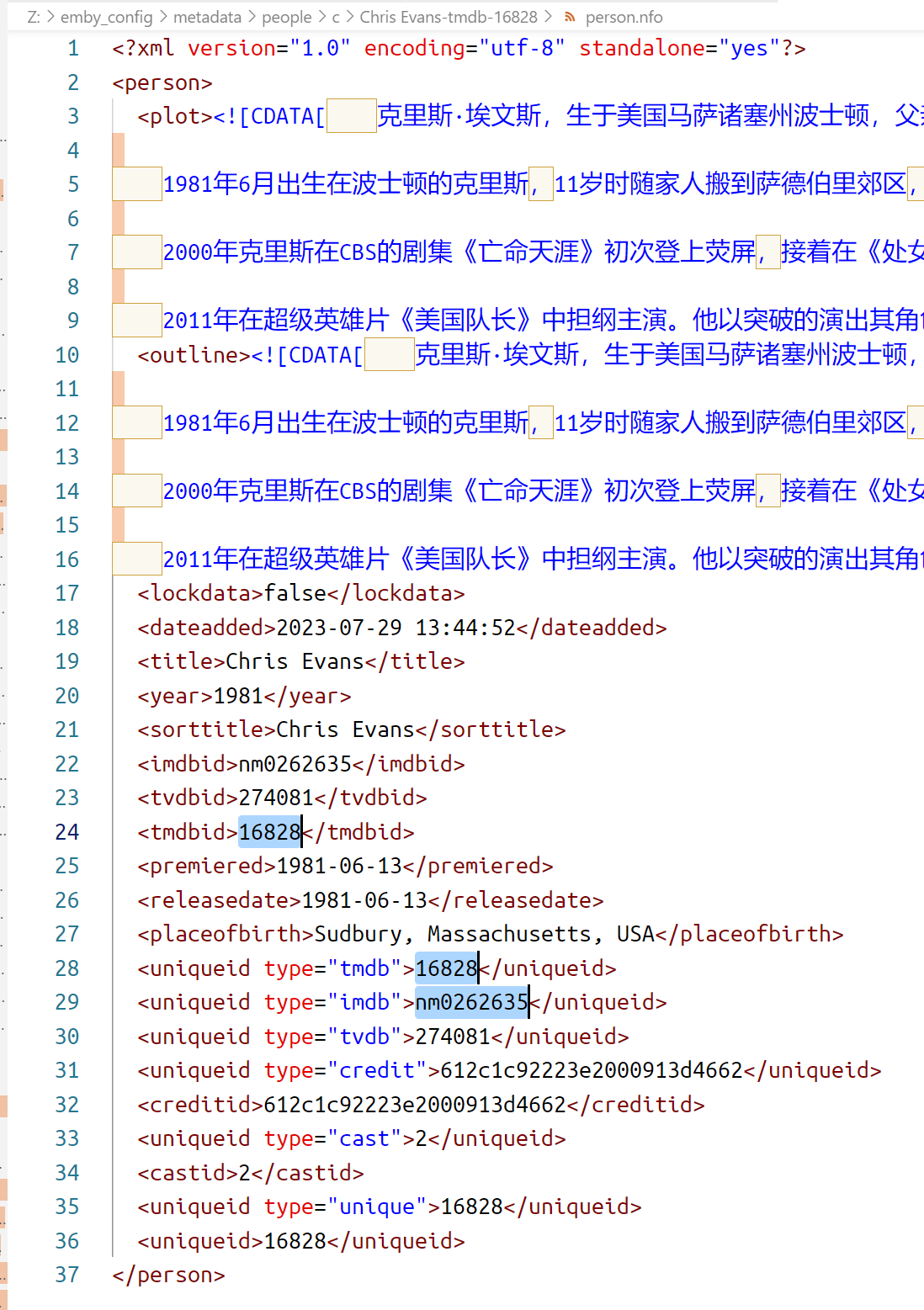 y29shi 8 Posted September 3, 2023 Author Posted September 3, 2023 On 26/08/2023 at 06:01, Luke said: HI, yea it's strange. Please see the last two pages here for what this user did: Thanks. in the metadata folder, there are two subfolders with name "Chris Evans". Both have the imdb id pointing to the real Chris Evans, but only one of them have the correct tmdb id and the other one is wrong (that Chinese actor indeed played in a movie that is in my library). I don't know how it bacame like this, but it is like this now.