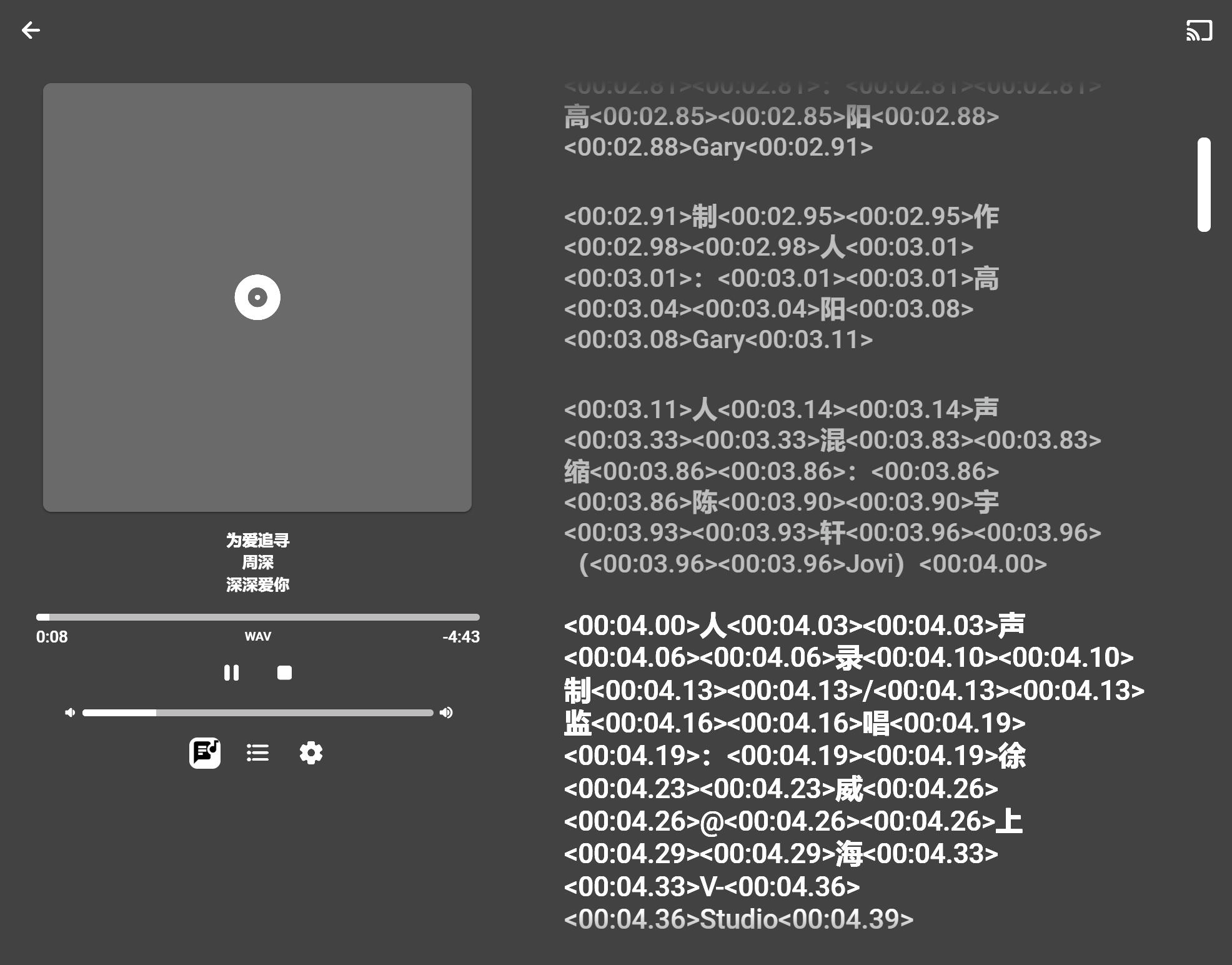 suming 21 Posted August 22, 2023 Author Posted August 22, 2023 (edited) 12 hours ago, Luke said: Please provide a specific example. Thanks. 比如像这种 A/B/C 中没有图片文件,只有歌曲文件,因为文件夹非常多,我是按歌手名分类的 这种情况只有 1/2/3 这3个文件可以显示封面 另外第2个问题,不支持每个文件一个时间轴的歌词文件,会显示出来时间轴,如图: 附上歌词文件 周深 - 为爱追寻.lrc Edited August 22, 2023 by suming