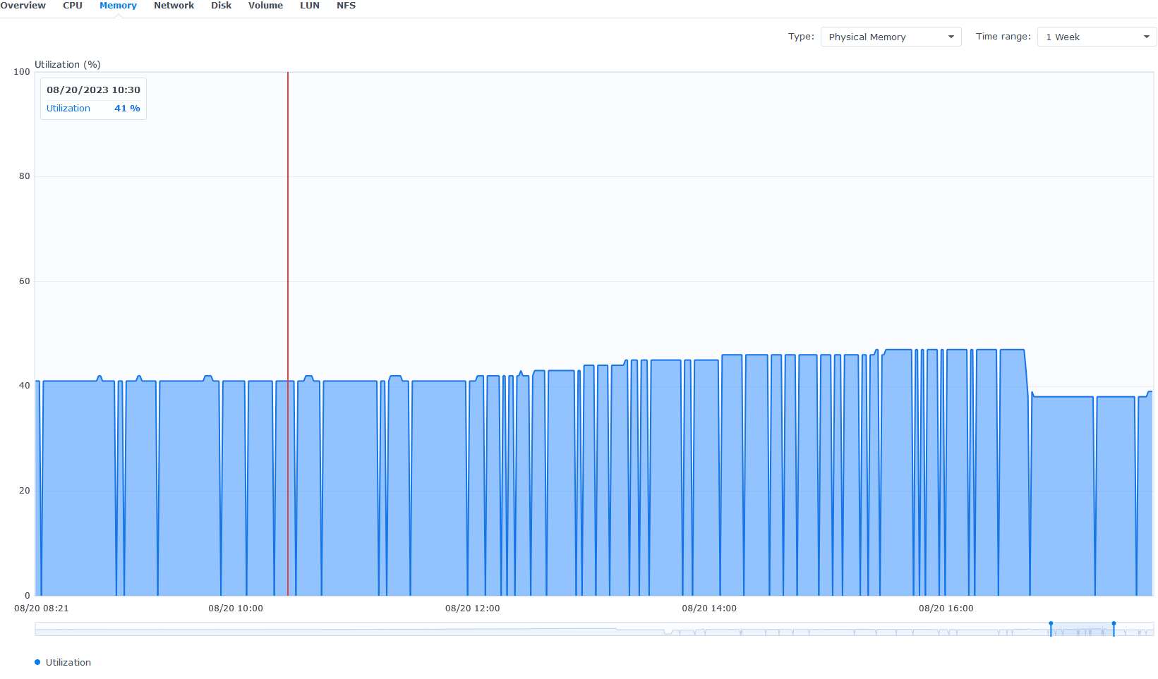 dv1r 27 Posted August 20, 2023 Posted August 20, 2023 Hi, I recently update DSM to 7.2 and in addition, I updated emby server to the 7.2 build Version 4.7.13.0 The update took place on the 17th. Since then, emby crashed twice. First time I let it slide. Second time I looked into it. This is the last lines in the log before the crash: 2023-08-20 16:42:07.000 Info Server: http/1.1 POST https://emby_remote_ip/emby/Sessions/Playing/Progress. UserAgent: Dalvik/2.1.0 (Linux; U; Android 9; MIBOX4 Build/PI) 2023-08-20 16:42:07.001 Info Server: http/1.1 Response 204 to host3. Time: 1ms. https://emby_remote_ip/emby/Sessions/Playing/Progress 2023-08-20 16:42:20.804 Error PlaybackReporting - EventMonitorEntryPoint: PlaybackMonitoringTask Exception *** Error Report *** Version: 4.7.13.0 Command line: /volume1/@appstore/EmbyServer/system/EmbyServer.dll -programdata /var/packages/EmbyServer/var -ffdetect /var/packages/EmbyServer/target/bin/ffdetect -ffmpeg /var/packages/EmbyServer/target/bin/ffmpeg -ffprobe /var/packages/EmbyServer/target/bin/ffprobe -nolocalportconfig -ignore_vaapi_enabled_flag -pidfile /var/packages/EmbyServer/var/EmbyServer.pid -defaultdirectory /volume1/Public -updatepackage emby-server-synology72_{version}_x86_64.spk Operating system: Linux version 4.4.302+ (root@build5) (gcc version 12.2.0 (GCC) ) #64570 SMP Thu Jul 20 00:06:39 CST 2023 Framework: .NET 6.0.14 OS/Process: x64/x64 Runtime: volume1/@appstore/EmbyServer/system/System.Private.CoreLib.dll Processor count: 8 Data path: /var/packages/EmbyServer/var Application path: /volume1/@appstore/EmbyServer/system System.OutOfMemoryException: System.OutOfMemoryException: Exception of type 'System.OutOfMemoryException' was thrown. at SQLitePCL.pretty.DatabaseConnection.RollbackTransaction(IDatabaseConnection This) at SQLitePCL.pretty.DatabaseConnection.RunInTransaction[T](IDatabaseConnection This, Func`2 f, TransactionMode mode) at SQLitePCL.pretty.DatabaseConnection.RunInTransaction(IDatabaseConnection This, Action`1 action, TransactionMode mode) at playback_reporting.Data.ActivityRepository.UpdatePlaybackAction(PlaybackInfo play_info) at playback_reporting.EventMonitorEntryPoint.ProcessSessions() at playback_reporting.EventMonitorEntryPoint.PlaybackMonitoringTask() Source: SQLitePCL.pretty TargetSite: Void RollbackTransaction(SQLitePCL.pretty.IDatabaseConnection) 2023-08-20 16:42:20.804 Info PlaybackReporting - EventMonitorEntryPoint: PlaybackMonitoringTask New Thread Sleep : 30 While looking through the log file, I see this recurring exception: (not really sure how to approach this one) 2023-08-20 11:27:14.253 Error App: Error getting files from /var/packages/EmbyServer/var/data/collections *** Error Report *** Version: 4.7.13.0 Command line: /volume1/@appstore/EmbyServer/system/EmbyServer.dll -programdata /var/packages/EmbyServer/var -ffdetect /var/packages/EmbyServer/target/bin/ffdetect -ffmpeg /var/packages/EmbyServer/target/bin/ffmpeg -ffprobe /var/packages/EmbyServer/target/bin/ffprobe -nolocalportconfig -ignore_vaapi_enabled_flag -pidfile /var/packages/EmbyServer/var/EmbyServer.pid -defaultdirectory /volume1/Public -updatepackage emby-server-synology72_{version}_x86_64.spk Operating system: Linux version 4.4.302+ (root@build5) (gcc version 12.2.0 (GCC) ) #64570 SMP Thu Jul 20 00:06:39 CST 2023 Framework: .NET 6.0.14 OS/Process: x64/x64 Runtime: volume1/@appstore/EmbyServer/system/System.Private.CoreLib.dll Processor count: 8 Data path: /var/packages/EmbyServer/var Application path: /volume1/@appstore/EmbyServer/system System.IO.DirectoryNotFoundException: System.IO.DirectoryNotFoundException: Could not find a part of the path '/var/packages/EmbyServer/var/data/collections'. at System.IO.Enumeration.FileSystemEnumerator`1.CreateDirectoryHandle(String path, Boolean ignoreNotFound) at System.IO.Enumeration.FileSystemEnumerator`1.Init() at System.IO.Enumeration.FileSystemEnumerable`1..ctor(String directory, FindTransform transform, EnumerationOptions options, Boolean isNormalized) at System.IO.Enumeration.FileSystemEnumerableFactory.FileSystemInfos(String directory, String expression, EnumerationOptions options, Boolean isNormalized) at System.IO.DirectoryInfo.InternalEnumerateInfos(String path, String searchPattern, SearchTarget searchTarget, EnumerationOptions options) at Emby.Server.Implementations.IO.ManagedFileSystem.GetFileSystemEntries(String path, Boolean recursive) at MediaBrowser.Controller.Providers.DirectoryService.GetFileSystemEntries(String path, Boolean clearCache) at MediaBrowser.LocalMetadata.Images.LocalImageProvider.GetFiles(String[] paths, Boolean throwOnException, IDirectoryService directoryService) Source: System.Private.CoreLib TargetSite: IntPtr CreateDirectoryHandle(System.String, Boolean) When the server crashed, the system was at 47% (out of 32GB) and the storage has a few TBs free. Before the crash, there we a remote user watching trans coded media. Looking at the system memory around that time you can see the memory increase over the viewing session and then crashing: The red line is the start of the viewing session and you can see where the service crashed at 47% ( that's about 1.9GB increase in memory usage). After the crash, the system is at 38%( About 2.9GB freed up). Any idea what I can do about this? Thanks for reading
