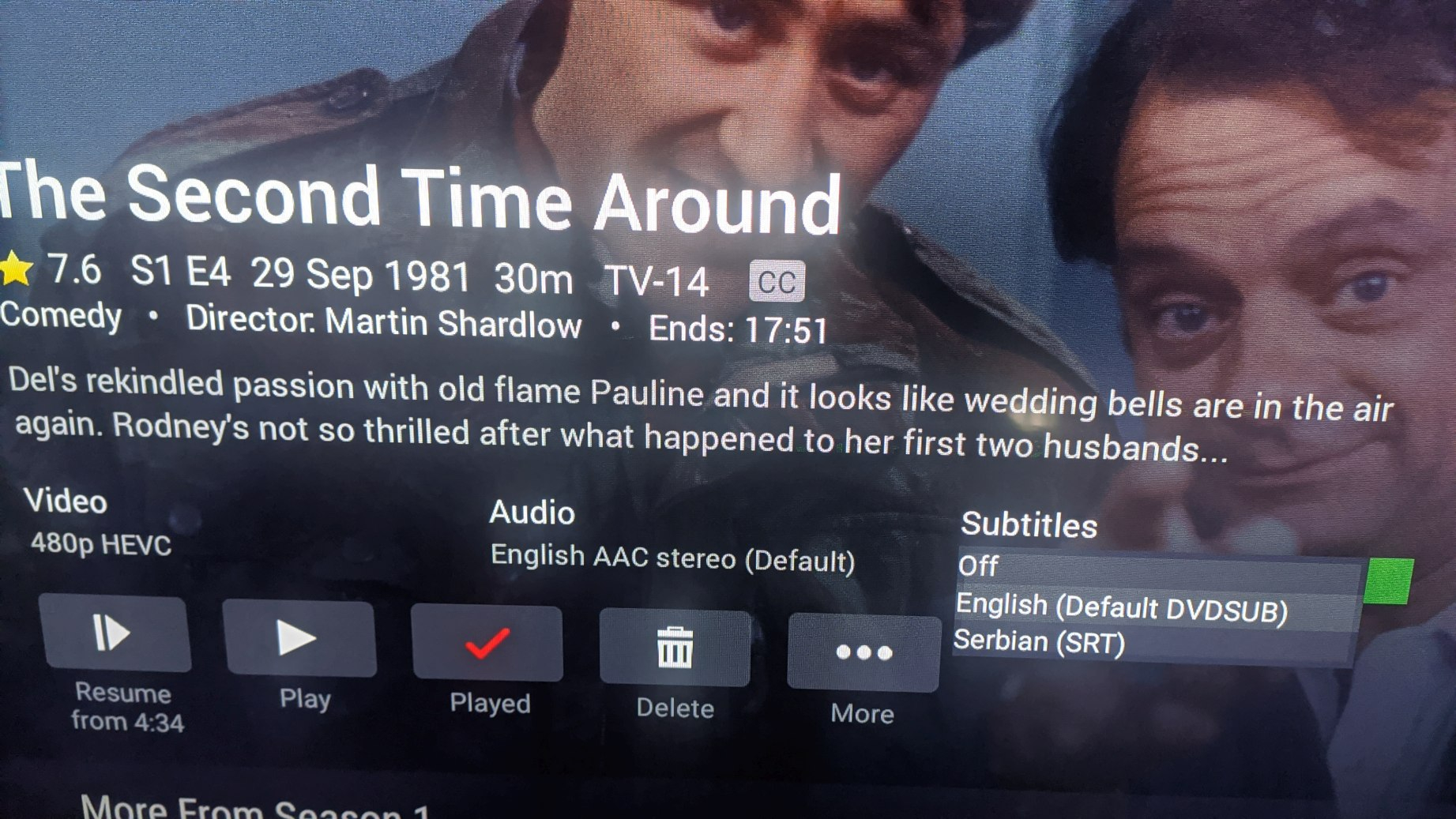 Nabukodonosor 13 Posted August 21, 2023 Posted August 21, 2023 The first issue, on my first screenshot...When I open some episodes, it plays a wrong episode. I didn't know why until I saw several file names under the Video section. On my other screenshots you can see my file struction on my server, and where these files are. I think in this case the issue comes fom the S01E03 part of the both names. This is not good, at all. How can I solve this? Of course without renaming the files. On the other hand, I had the same issue with this same series, but with specials. There were 4 different specials episodes under the Video section, and in that case the issue couldn't be that season and episode numbering. My other issue is on my second screenshot. As you can see on the rest of my screenshots, I have all subtitles in Serbian. But when Serbian is selected in the Subtitles menu, nothing is displayed, no subtitle. I have to choose that English option, and only then the Serbian subtitle is showed. But the problem is, it's out of sync. The timings are correct, because when I play the same show on my PC in MPC player, the sync is good. I think it shows the Serbian subtitle, but it uses that English timing. Any idea why is this happening? My device is Mi Stick 4k with AndroidTV.