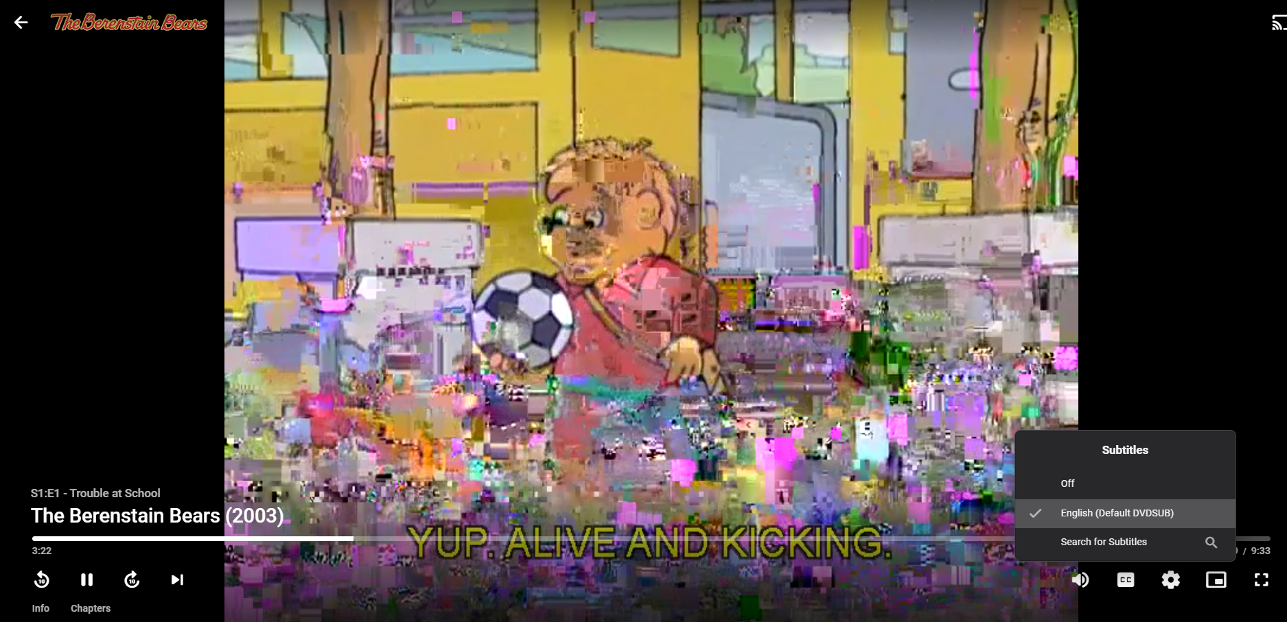 Mr.Berzerk 4 Posted August 28, 2023 Author Posted August 28, 2023 Here is a screen shot with the type of subtitle. In this example the subtitles were taken from the DVD. I only have about 6 movies of ~10,000 that use srt files. Nearly everything under 1080p is .m4v, anything 1080p or better is in .mkv, with the subtitles stored in the m4v/mkv containers.