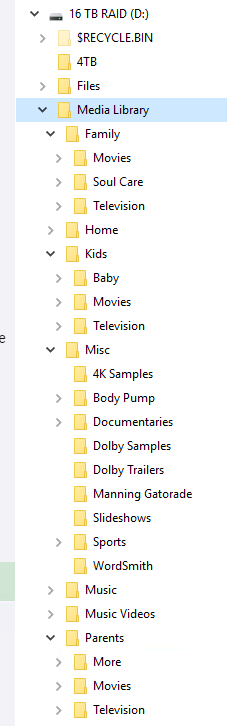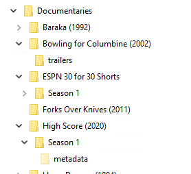 spearoid 4 Posted August 30, 2023 Author Posted August 30, 2023 (edited) flawlessly? lol Parents\TV\Seinfeld\Season 1\S01E01.mp4 Parents\Movies\Diehard (1988)\Diehard (1988).mkv Same TV structure for anything of mine that would be found on thetvdb.com The only "mixed content" library that is actually mixed content for me, is the Documentaries library, where some documentaries are viewed/treated like movies. I don't know why my Parents and Family TV folders are set as mixed content....there really is no reason for them to be. But this problem came to the fore because I wanted this newly created Documentaries library to show the mutli-episode TV-show-like documentaries as well as the single video movie-like documentaries. Edited August 30, 2023 by spearoid