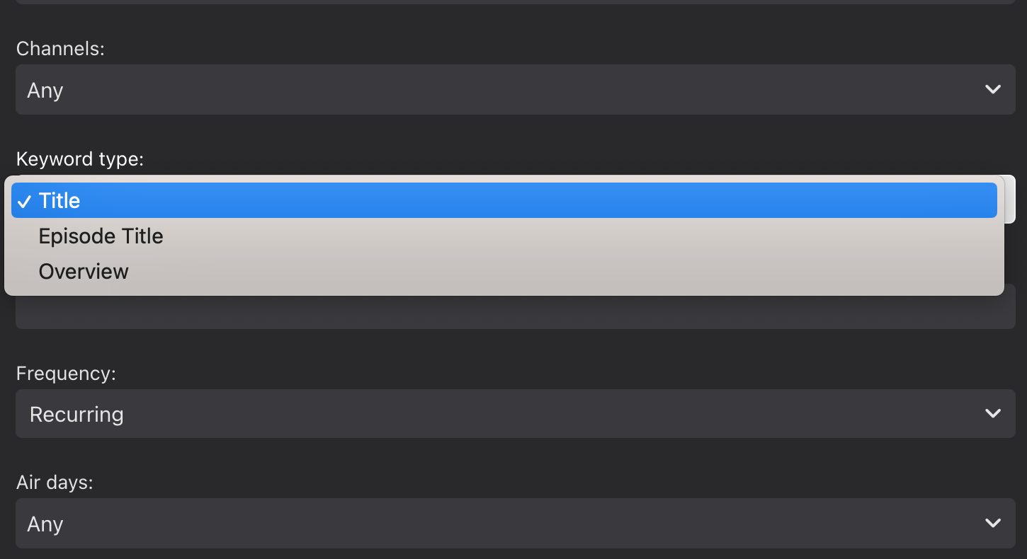 However, I found MythTV had started quietly deleting some episodes of one show. That TV series isn't currently being broadcast on any TV station I receive.  Is there a way I could set Emby to automatically record any missing episodes of the TV series that might be broadcast sometime in the future? (E.g. Like a link from the recorded TV Shows page for that series, to set up future recordings for it on any channel?)
