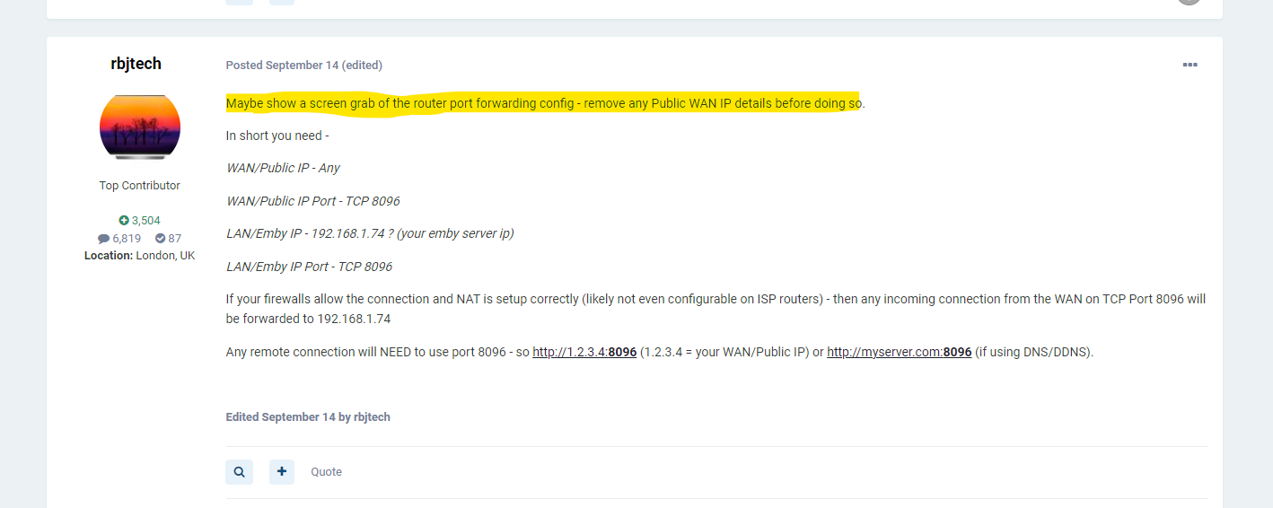 beefsnack 16 Posted September 26, 2023 Author Posted September 26, 2023 Indeed, Normally I wouldn't of had the port forwarding enabled because I didn't need it from the beginning, (It was working without it) Emby had uPnP enabled already, and because I was already frustrated and something so simple completely passed me by, All besides the point I'm just glad it was pointed out and it wont be happening again now that I'm aware of the mistake, and paying more attention to details!