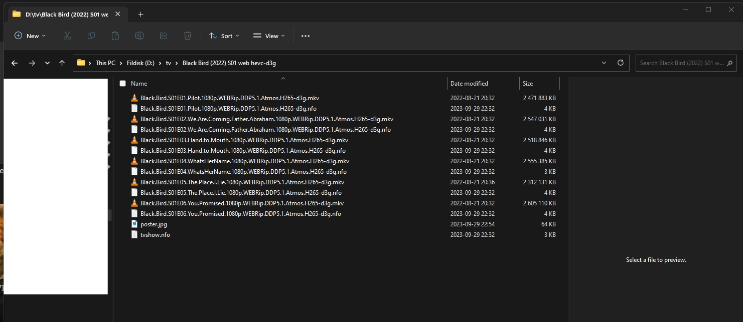aldriglikvid 4 Posted September 23, 2023 Author Posted September 23, 2023 (edited) 23 minutes ago, Luke said: Can you please provide a specific example of a series folder name, as well as what is underneath? Thanks. Sure: D:\tv\Yellowjackets.S01.1080p.AMZN.WEB-DL.DDP5.1.H.264-Group Below: Yellowjackets.S01E01.Pilot.1080p.AMZN.WEB-DL.DDP5.1.H.264-Group.MKV D:\tv\Slow.Horses.S02.2160p.ATVP.WEB-DL.DDP5.1.HDR.H.265-Group Below: Slow.Horses.S02E01.Last.Stop.REPACK.2160p.ATVP.WEB-DL.DDP5.1.HDR.H.265-Group.MKV Edited September 23, 2023 by aldriglikvid