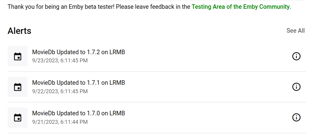 rdhardi 42 Posted September 24, 2023 Posted September 24, 2023 Not sure where to post this, but since I'm running Emby on Linux (Emby Server 4.8.0.39 on Ubuntu 20.04), I'll just drop it here. I've received 3 MovieDB updates in the last 3 days. I restarted the server to install the first 2, but when I got a third one today, I didn't restart yet because...last time I had this many MovieDB upates in the same week was during the botnet security incident in May. I wasn't affected by that, but, yea, I'm paranoid! Just want to check. Overview states "Improve language matching" for the last two and "Compatibility Update" for the first one, so I'm assuming these are legit?? Thanks!