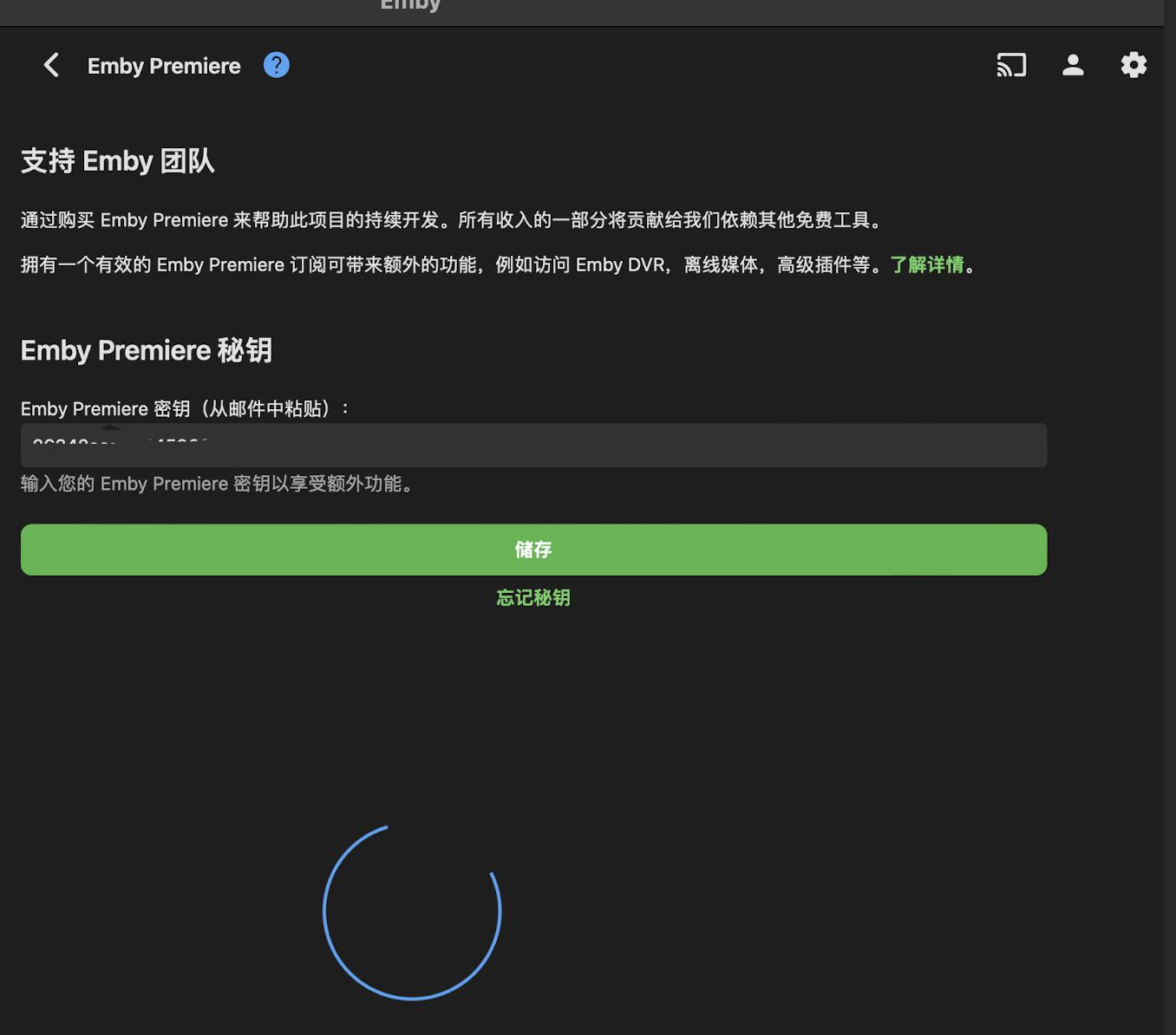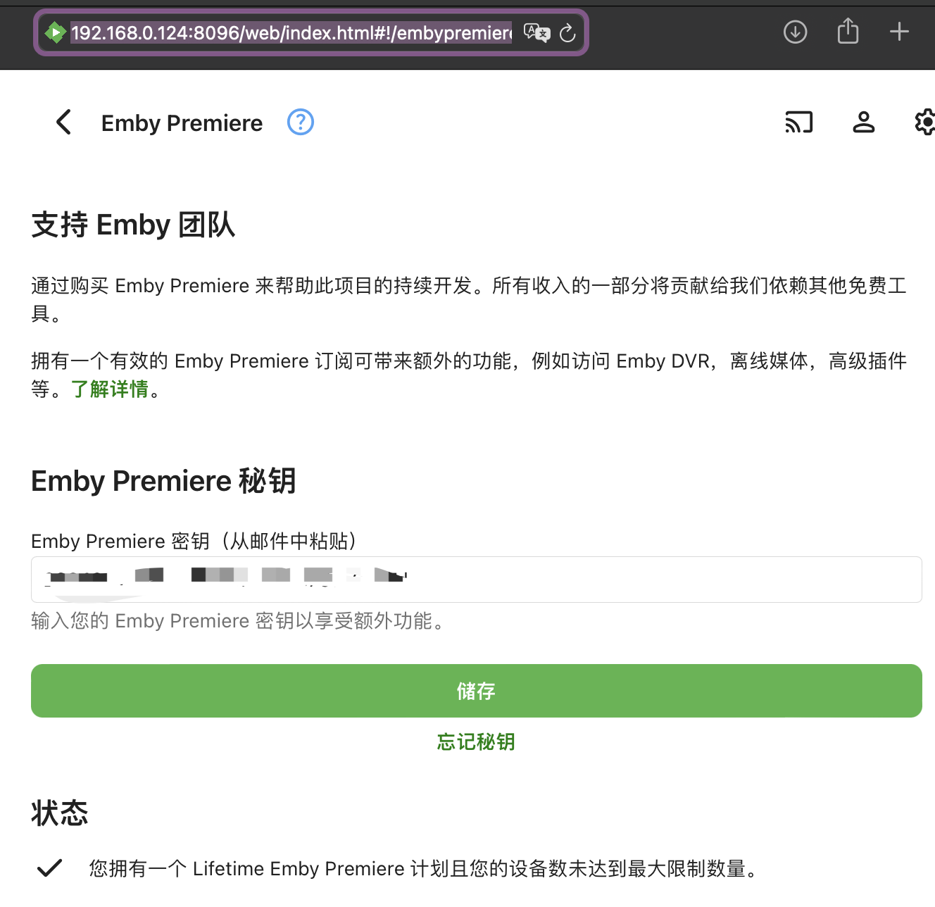 AckHuang 0 Posted June 16, 2024 Posted June 16, 2024 我也有同样的问题。我的EmbyServer之前安装在群晖NAS的docker中,使用正常。今天我卸载了docker中的EmbyServer,以NAS套件的方式重新安装在群晖NAS中。安装后我在通过浏览器设置了Embyserver的Premiere密钥、显示正常,并且通过浏览器可以播放硬盘,但通过Emby客户端播放时,提示我需要购买EmbyPremiere。并且通过客户端查看Premiere密钥时、虽然显示正确的密钥、但是没有显示密钥状态,界面上一直显示一个蓝色转圈。重新启动Embvserver后仍然是这样。移除密钥保存,显示移除成功,再填写密钥也没用。