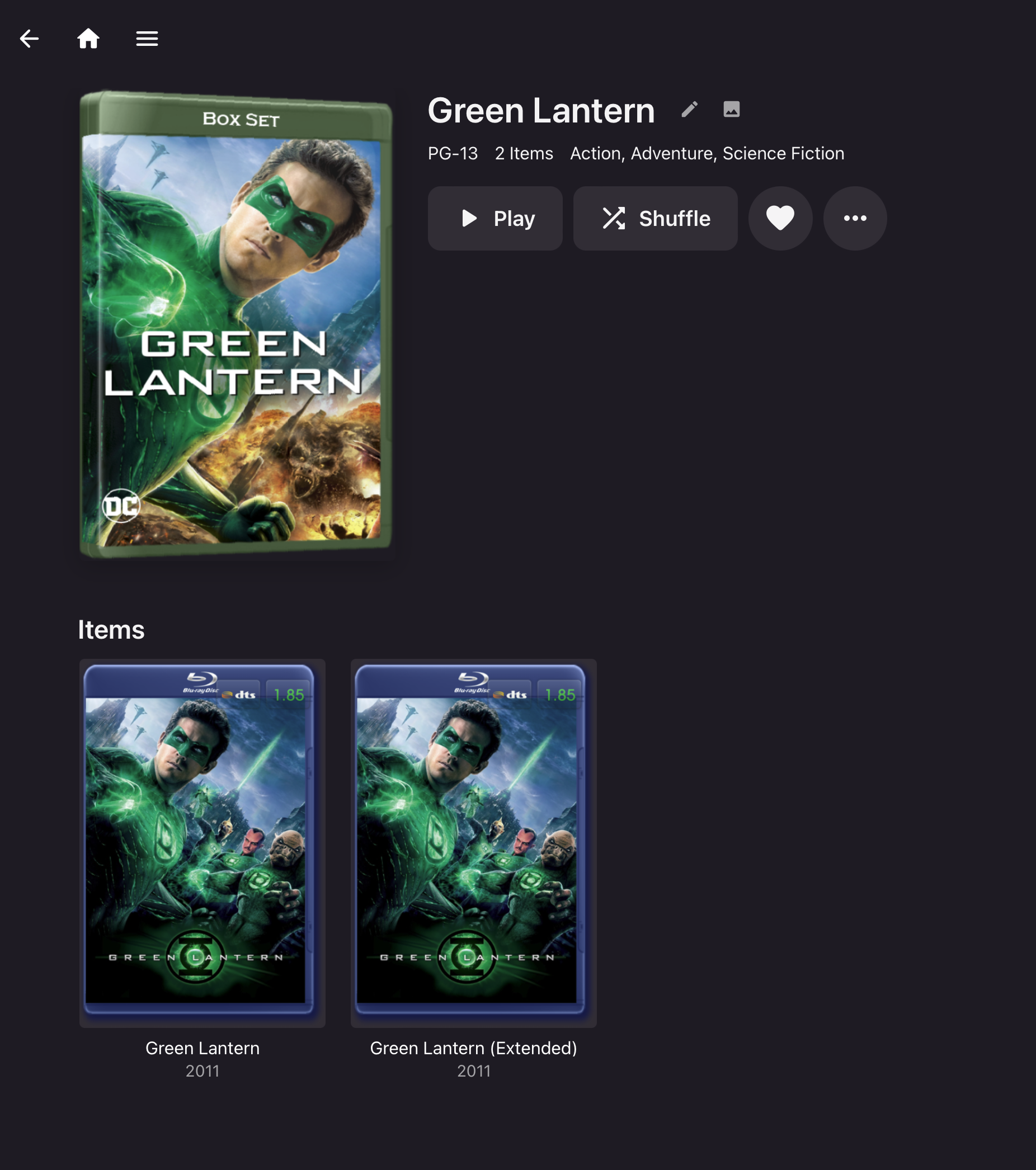 blgentry 51 Posted September 29, 2023 Posted September 29, 2023 (edited) You probably should not be using the movie "Versions feature". I say this because it does not allow you the level of control that you want. Instead, you should split the versions apart so that they appear as two different movies. Then the magic: Make a collection with the name of the movie and put both movies in the collection. Now you will have a single poster on the main screen for this movie. Click it and you will see both movies with their titles, etc. Because they are independent movies in that view, you can edit them to change their sorting. You don't have to change the title. Just change the sort title to make the one you like sort first. This is how I have set up all of my movies that are different versions of the same thing. It feels much more correct to me and it makes it quite obvious that I have two (or more) versions because there are two covers. The built in versions feature makes it a lot less obvious because it's all "hidden" behind the dropdown box. I've attached an example screen shot of how I did this for Green Lantern. Brian. Edited September 29, 2023 by blgentry
