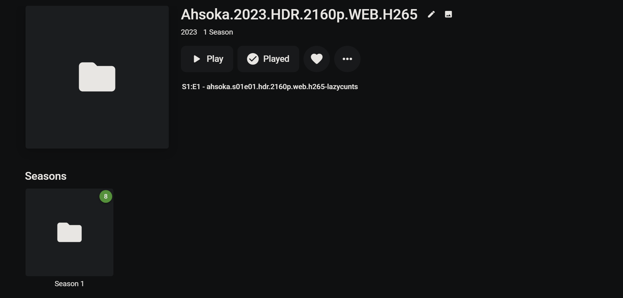 Guest Armalog Posted November 8, 2023 Posted November 8, 2023 Every episode has a subfolder inside it under seasons containing only that one episode. This is done with every single episode under my TV folder.