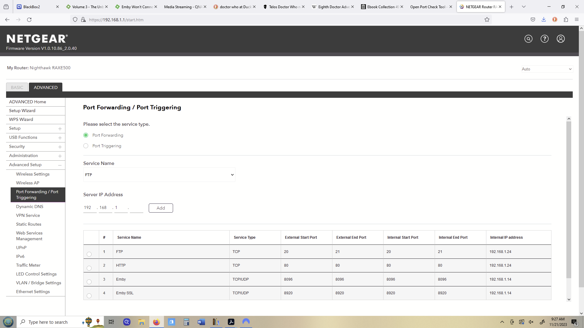 jprobins007 24 Posted November 19, 2023 Posted November 19, 2023 Having worked beautifully for quite some time, I seem now to be unable to connect to Emby on PC or Android app outside the home network. On PC, I get a "Connection has Timed Out" error message. On Android, the "working" circle goes around for a while, then it asks me to choose a server. When I try to choose the correct server, the same sequence recurs. I am attaching a log covering the time I was trying to connect. I am afraid it will be of limited use as I don't think the connection is being refused, b ut rather is not reaching Emby at all. This happened previously. In that instance, the router had reassigned port addresses and I had not noticed. Since then I have used a static address. Port forwarding is also enabled. I am running Emby 4.7.14.0 on a QNAP NAS which runs QuTS Hero 5.1.2.2534. I have already gone through the instructions at https://emby.media/support/articles/Remote-Setup.html. It appears that I am not subject to cgNAT issue. I have confirmed the port address. There is no firewall running that I can find. I have not changed hardware or configuration. I would guess that there may have been updates to some software (including Emby and QuTS Hero) in the period since I know it was working. Any help troubleshooting this would be greatly appreciated. 11-19-23 embyserver.txt