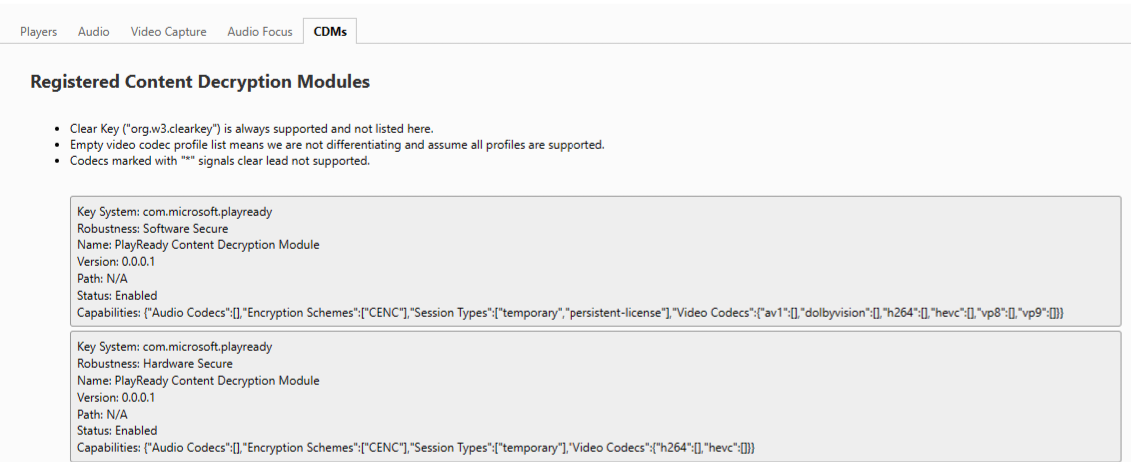 Turbofiero 5 Posted December 11, 2023 Posted December 11, 2023 This used to work fine, im not sure what happened over the past year or so, but it would seem I can no longer direct play HEVC content despite having the codec installed and edge://media-internals CDMs do show hevc listed... Suggestions? Issue is present on any device even ones that do have hevc support Key System: com.microsoft.playready Robustness: Software Secure Name: PlayReady Content Decryption Module Version: 0.0.0.1 Path: N/A Status: Enabled Capabilities: {"Audio Codecs":[],"Encryption Schemes":["CENC"],"Session Types":["temporary","persistent-license"],"Video Codecs":{"dolbyvision":[],"h264":[],"hevc":[],"vp8":[],"vp9":[]}}