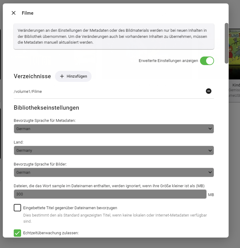 Luke 42077 Posted December 28, 2023 Posted December 28, 2023 6 hours ago, stalker1978 said: Hallo Nein steht beides auf german, oder gibt es noch irgenwo andere einstellungen? Der ordner wird nur hir verwendet und eingelesen. What other Emby libraries have you created?
