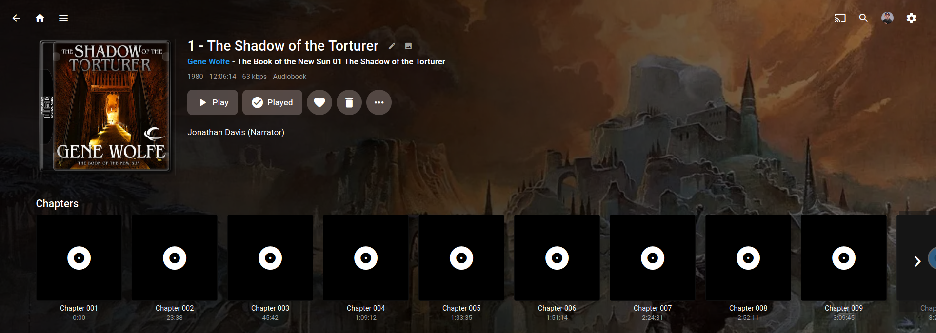Junglejim 385 Posted January 2, 2024 Posted January 2, 2024 (edited) On 31/12/2023 at 11:11, runtimesandbox said: I have started adding some audiobooks to Emby to test with now that Emby supports m4b and i have figured out how to add chapter tags. When viewing an audiobook page in the webapp that has a description longer than one line, this gets cut off as per following screenshot. It would also be great to show the chapters info on this screen, rather than having to click through to the book, and then scroll down to see the chapters. Yeah, I don't add the overview with tags at track level because of the limited space, I just add a comment like "Jonathan Davis (Narrator)". I add the overview at the book level using emby's metadata editor.. I guess the only drawback to that is you loose the overview when you select the track but that doesn't bother me.. You could get a bit more descriptive with the track tag comment if you like, just keep it short. Edited January 2, 2024 by Junglejim