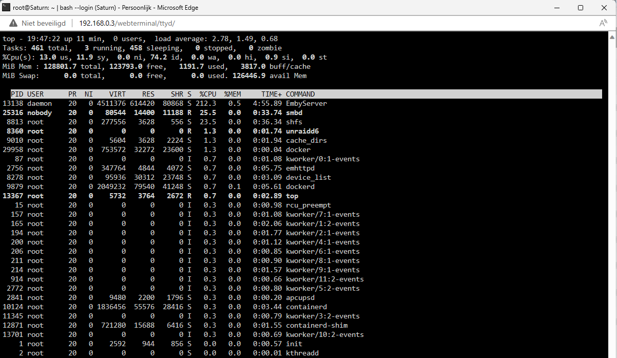 Q-Droid 989 Posted January 4, 2024 Posted January 4, 2024 Cool, more info. Thx. I'll start by stating that with a 12-thread CPU numbers in top will look inflated unless you turn off Irix mode (shift-i) but that's okay. In this case Emby is still tying up 2+ threads for direct play and that's too much. Now, your box seems to have a lot of overhead and that could be affecting things all around. I see what I think are at least 2(?) VMs (qemu-system-x86) that are somewhat busy. Are these associated with Emby in any way? Then there is rslsync and smbd doing something, not terribly busy. But the shfs process looks busier than you might expect. All of these are tied to I/O operations/services. Is this a steady state? My limited understanding of shfs is that it's FUSE based and for user shares and file caching but I have no idea if it can be tuned or how. If Emby is reading/writing to the same areas and having to go through these services I wonder if that also skews the stats. Concurrency and contention can make things worse. What jumps out the most is seeing that CPU usage overall (total) for system operations is over 28% while user operations are 24%, a bit lopsided. I would follow the advice from @rbjtech and try to isolate Emby and go back to basics. See if you can play media from a storage device/volume/location that is not managed or used by smbd, rslsync and shfs. Maybe stop the VMs temporarily. Bring things back in one-by-one and hopefully that will help identify what makes the load shoot up. On a bare metal box and even in Docker direct playback should use very little resources. But you have a few layers and side things possibly contributing to the load and maybe amplifying it. 1