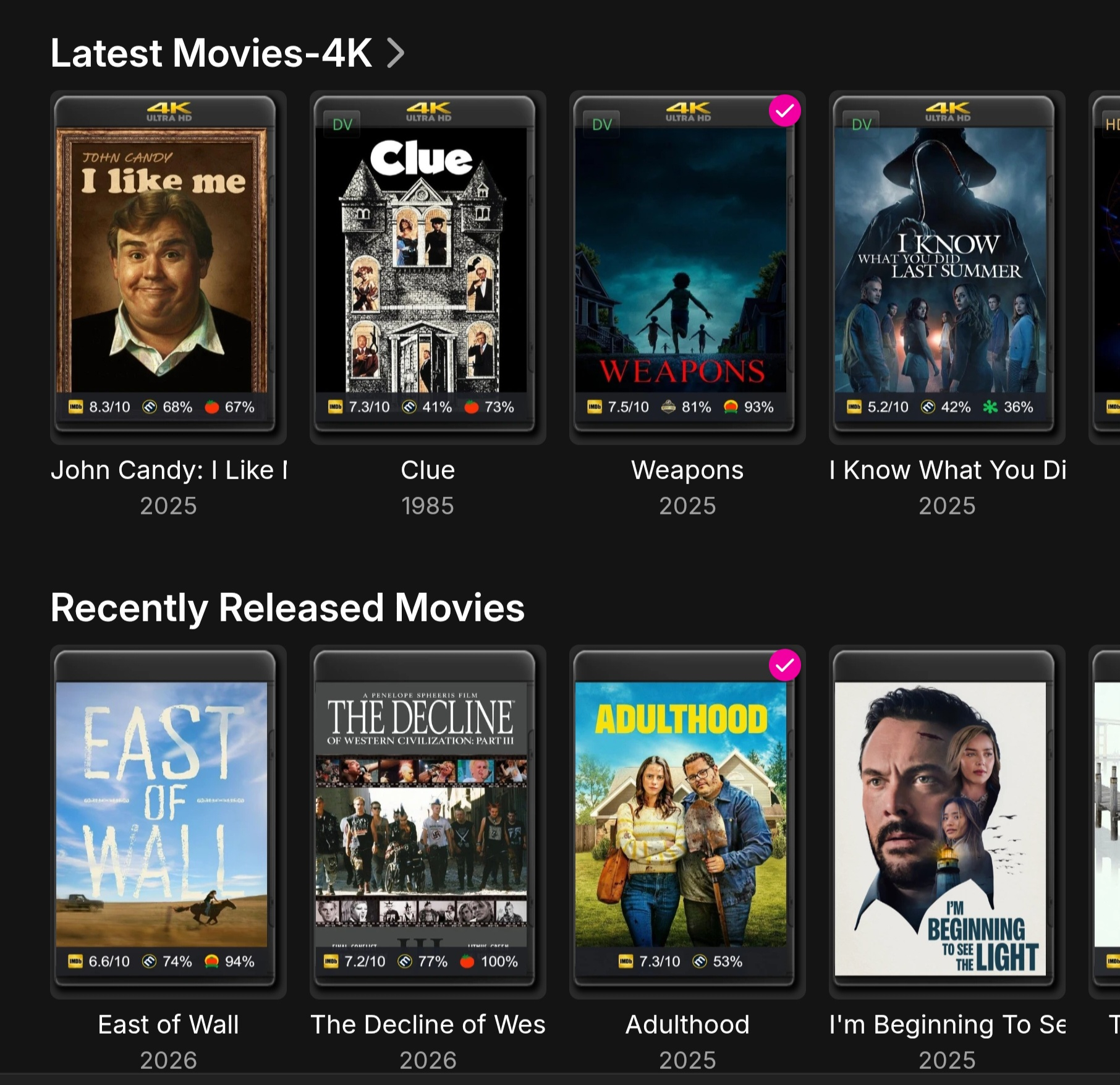 averrkn0t 5 Posted October 20, 2025 Posted October 20, 2025 Hi Luke, Any updates to this in the 2025 pipeline? Hi, I'm having the same sorting situation my tv/tv 4k series dates are listed on the home screen by various dates, as I understand that Tv/Movies are limited to the two above mentioned sorting methods. On the home screen there's a "Recently Released Movies" section for Movies which sorts perfectly. Is there any way to implement this feature for TV series? A Recently Released TV would be very helpful. My Library consists of: Tv Tv4k Movies Movies 4k