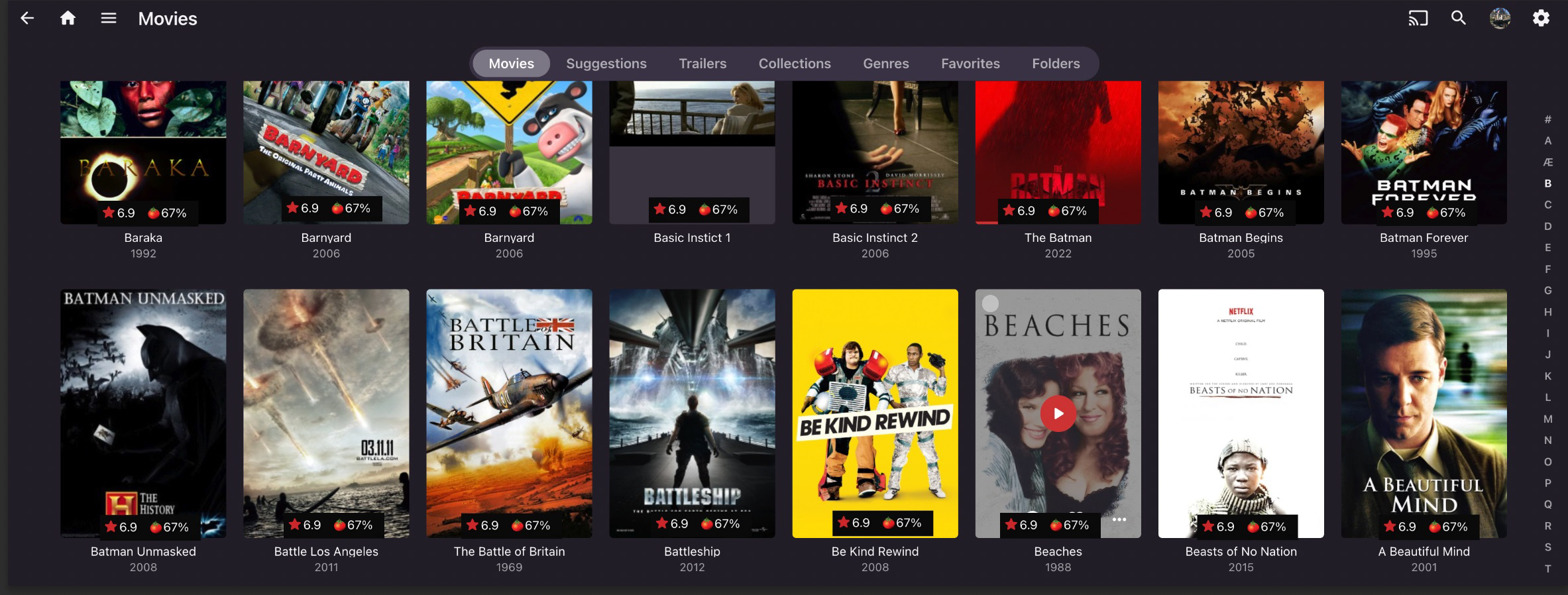 jazzmonger 1 Posted January 25, 2024 Posted January 25, 2024 I have thousands of movies on my Emby serveř. How can I get the ratings to display on the main screen? Is ther a plugin, a hidden setting somewhere? instead of having to click into EACH movie, show the ratings overlaid on the image of the movie. This would help identify that Barnyard isn't worth even looking into and A Beautiful mind most certainly is. it might look like this