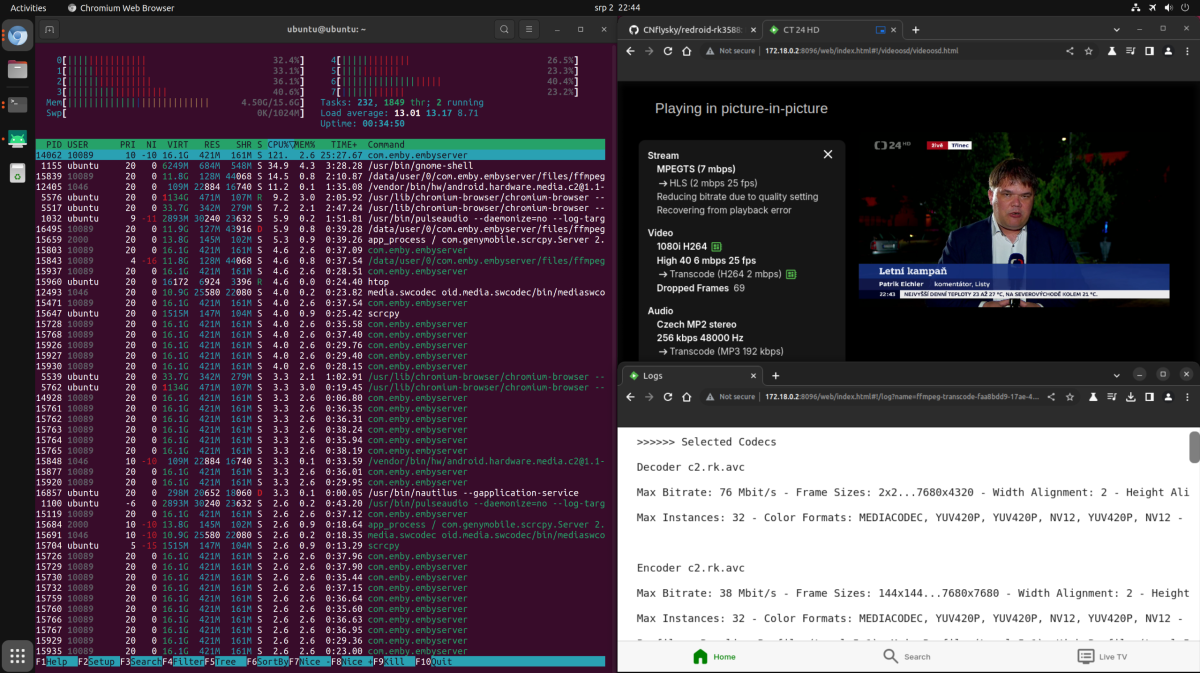 janmemby 7 Posted September 2, 2024 Posted September 2, 2024 (edited) 6 hours ago, softworkz said: You could also try to install Android OS and Emby Server Android. I'm not sure though, whether their Android image has rivers for video hwa. that was a good hint, meanwhile i did some interesting workaround that just proves again that hw transcoding is feasible on rk3588. i installed docker container redroid that basically runs android with gpu acceleration on my ubuntu. than installed emby server on this android and enabled hw transcoding. and voila, it is working, see few screenshots and transcoding log. of course, it is not preferred way to run, but at least to get an inspiration ffmpeg-transcode-faa8bdd9-17ae-47df-a25e-430a0e3dd6b5_1.txt Edited September 2, 2024 by janmemby