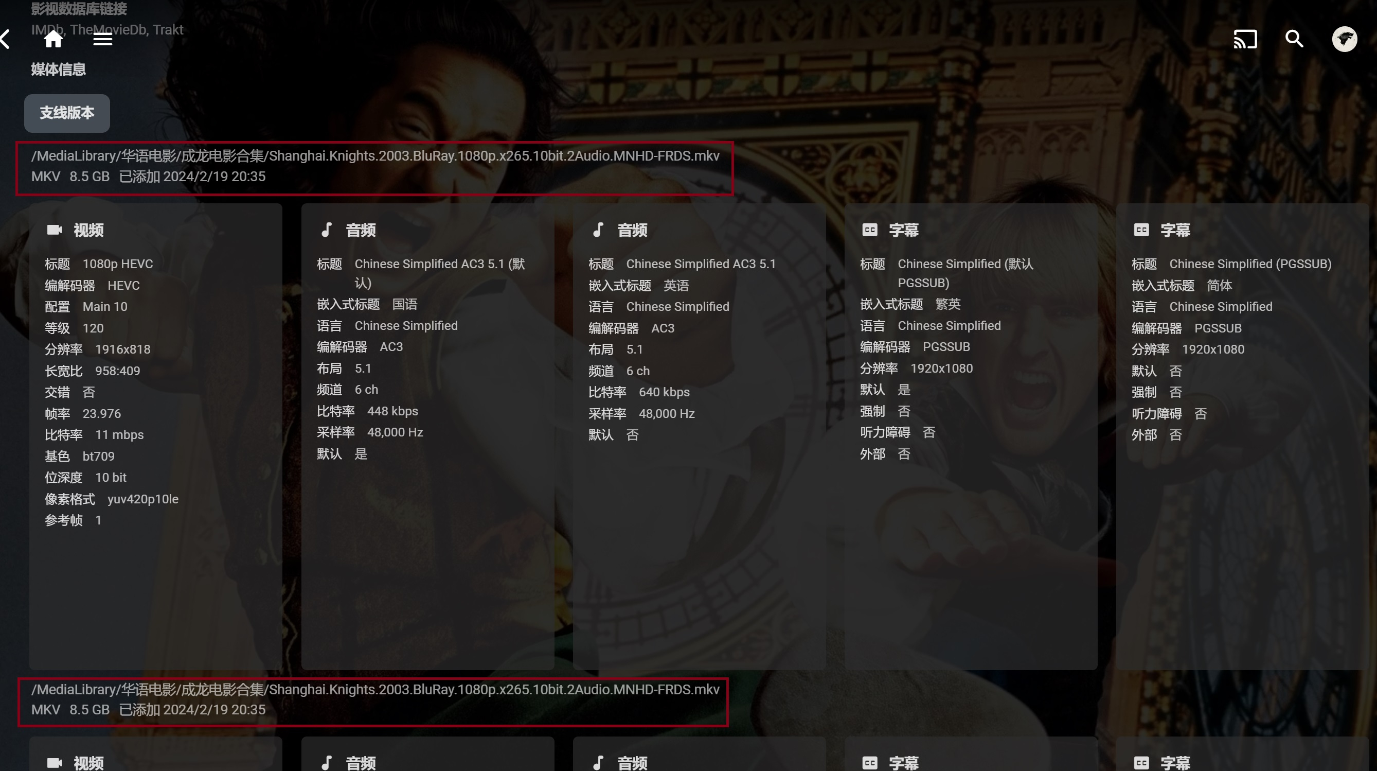 wolong_zb 10 Posted February 27, 2024 Posted February 27, 2024 I have the same problem, about 5% of movies repeat twice and up to 4 times, all pointing to the same path (soft links point to other paths). After deleting the item, it will continue to appear after refreshing. Unless the path of the file is changed, it will not appear after rescan. If you create a new server and then add the media library again, rescan add, then this image will not appear. The impression is from emby 4.8.x. Ubuntu 22.10/emby 4.8.1.0