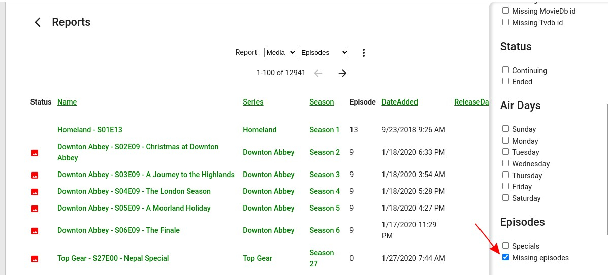 brandon6976 2 Posted February 7, 2024 Posted February 7, 2024 Hello, just yesterday I upgraded to 4.8.0.80, everything overall seems fine. However I often go to reports, go to media/episodes, and then filter and choose missing episodes. This would cut the list down to only the missing TV episodes. Now the checkbox does nothing and I can't see if there are missing episodes.