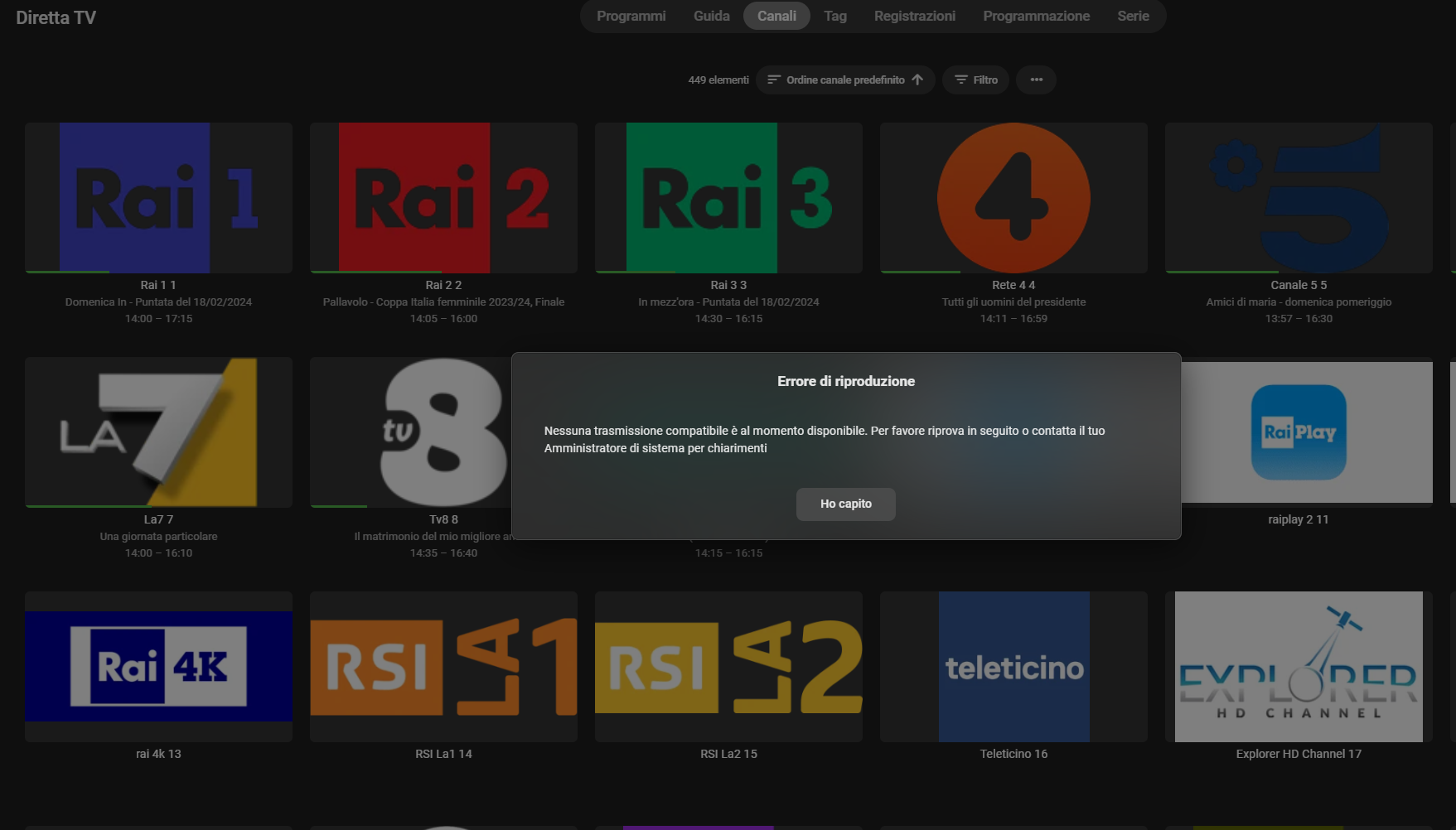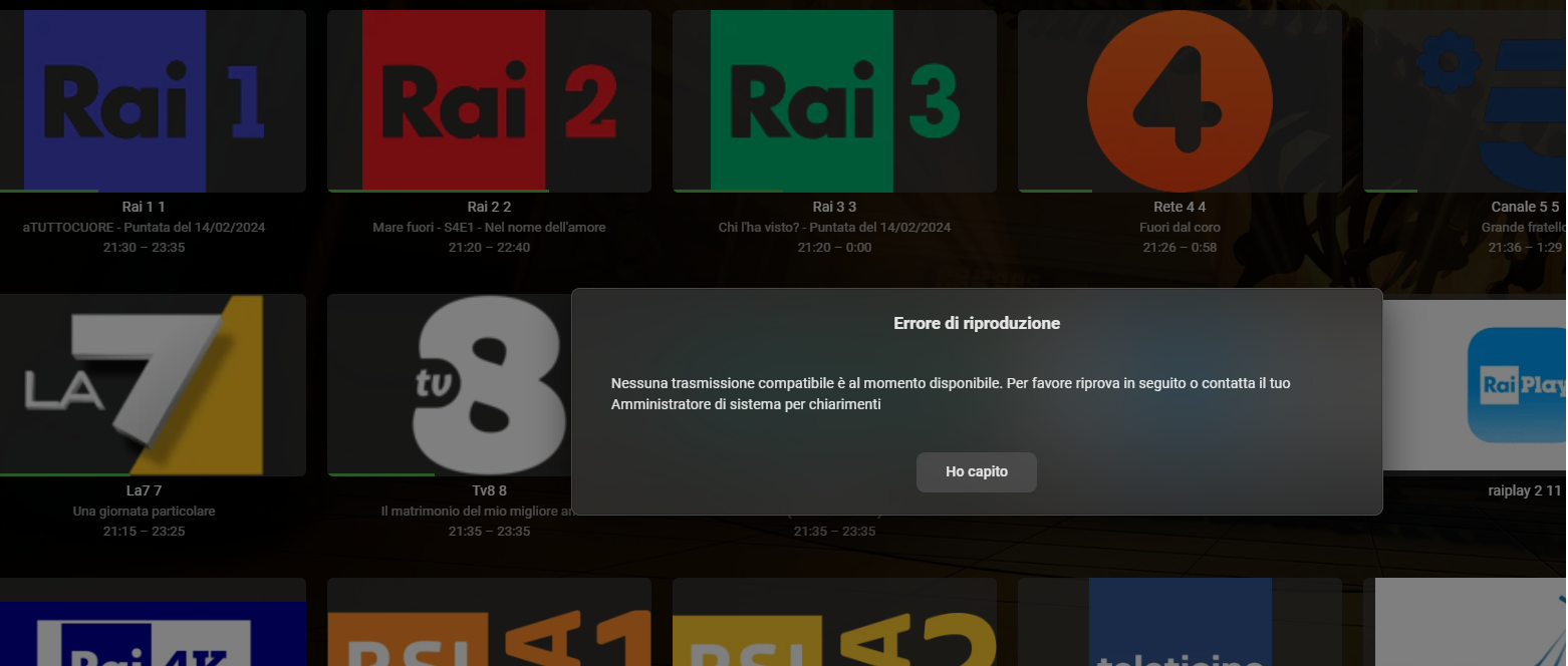 Hispanico957 23 Posted February 14, 2024 Author Posted February 14, 2024 (edited) Hey mate solved now i wrong write m3u, thank for your patience Now many programs are good but some Italian channel as Rai or Mediaset show this error Hispa Edited February 14, 2024 by Hispanico957