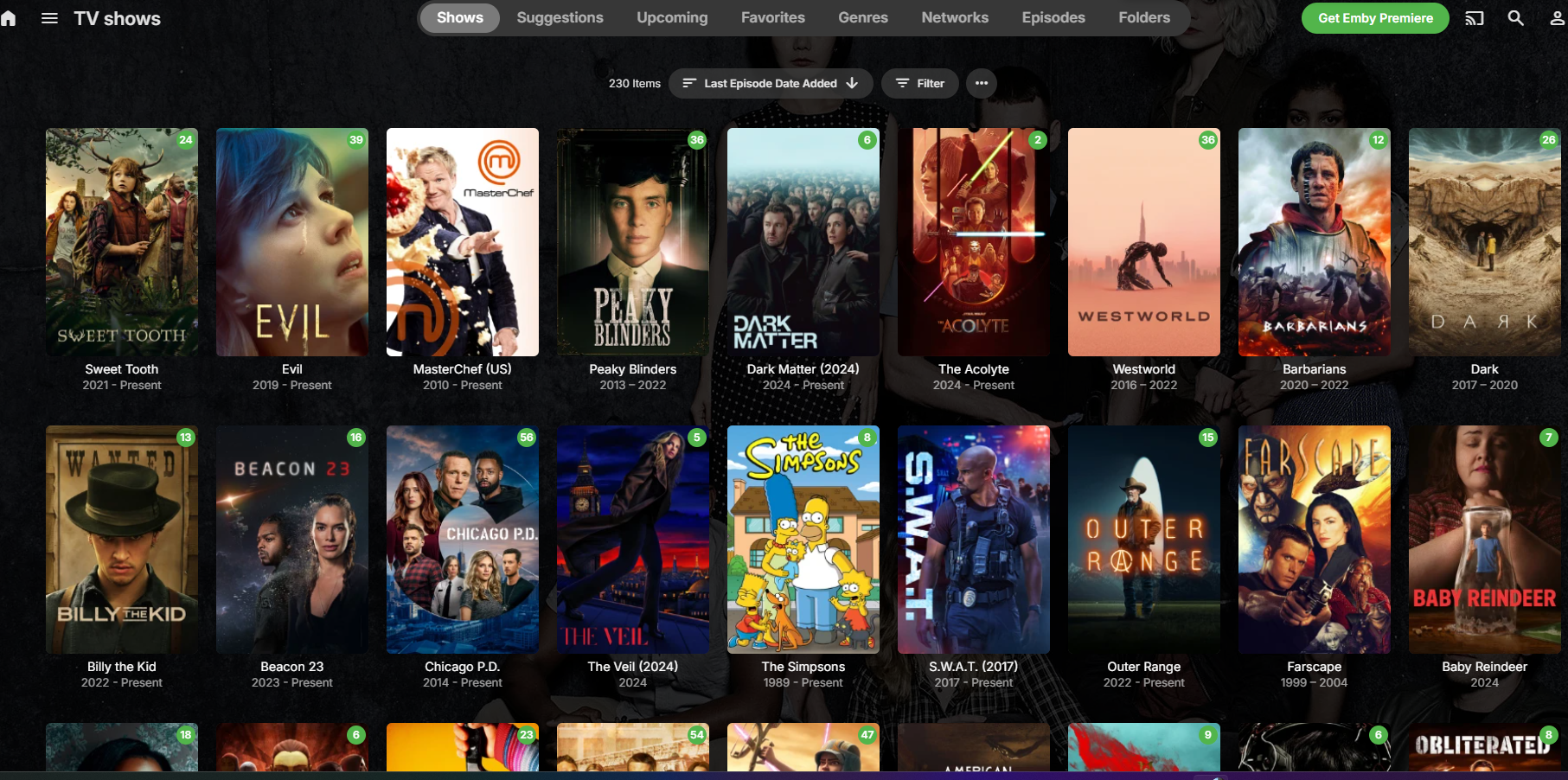Happy2Play 9780 Posted June 7, 2024 Posted June 7, 2024 (edited) 11 minutes ago, mathbernier said: I'm trying to understand here. I downloaded a file yesterday, 40GB. That file is 80 episodes which none of them appears on the Latest Shows. This his happening on 2 different Emby servers, located at 2 different physical place. Whatever i add goes to Latest TV Shows. It has been working like that for over 3 years no issues. So suddenly, i am downloading a show and now i need to change whatever i don't understand. When i go into my library, i put them by Date Added so i can have the newest first. If the show came out in 2014 and the last episode was in 2015, i want this show to be the last one added to the library because..That's what i did. So enlight me up because i don't understand your explanation at all. I just want my show to be in order of Date Added, and that show to be in the Latest Tv Show. Like it has been for years. Thanks Nothing has changed here from Emby beginning in reference to TV show. So what is your date added behavior as file created in 2015 can't be new only unless you have modified their creation date. Or files using Scan date can be new. Unless you have a platform that is defective in reading proper file dates. Date Added has never looked at episode so Home Screen has never sorted by it it has always been last episode added. So without knowing your added setting and every episode added date for True Blood it is impossible to say. But will guess you are using file creation and the files are not new. Edited June 7, 2024 by Happy2Play