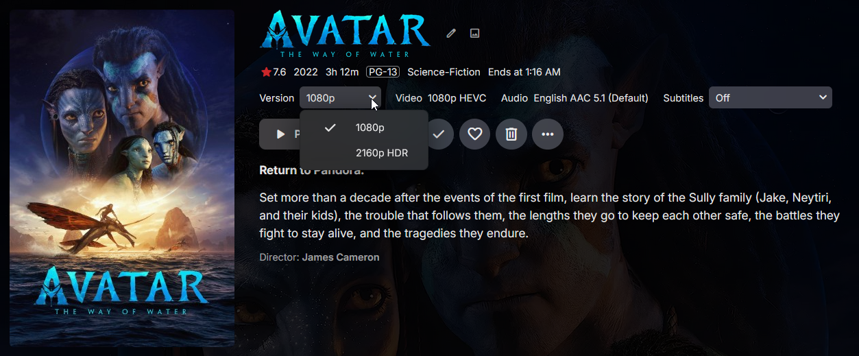 Luke 42077 Posted August 7, 2025 Posted August 7, 2025 On 7/31/2025 at 10:42 PM, japzone said: Hey, sorry to dig up an old topic, but I'm running into what seems to be the same exact issue. I've run into this before, but below is my most recent encounter. For the example, I already had Avatar 2: The Way of Water in my Library, but I've recently started getting into 3D, so I copied my new 3D copy of Avatar 2 into the same folder as the 2D formats I already have, 1080p and 4K HDR. I formatted the naming the same way as the existing copies, just changing the "1080p" part to "3D.hsbs". As you can see by the nfo file listed above, Emby properly detected the file and added its metadata(opening the file shows Avatar The Way of Water, etc). But if I actually open my Movie Library in the Android client or the Web client, I get just the 1080p and 4K versions showing up. But if I click "Split Versions Apart" I properly get the three separate versions that should exist, and Emby properly detects that the 3D file is 3D. But if I then multi-select the three versions and choose "Group Versions", I'm right back to the second image again. Nothing I've tried has changed the results. My server is version 4.8.11.0 running on a Synology NAS via native package install. Tested with Android and Web clients. embyserver.txt is a fresh boot and then using "Group Versions" on the three separated versions, and still getting image 2. embyserver2.txt is a fresh boot, after removing the movie from the library and re-scanning beforehand, and then after the boot I re-add the movie and its three versions back to the library and re-scan again. After the re-scan I'm back to image 2 again. embyserver.txt 70.02 kB · 0 downloads embyserver2.txt 74.54 kB · 0 downloads Hi, I believe this will be resolved as part of the upcoming 4.9 server release. Thanks. 1