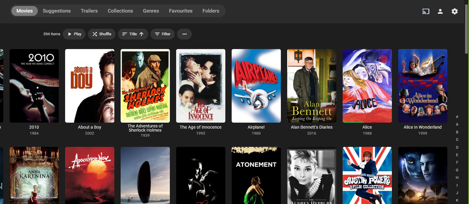 pwhodges 2012 Posted March 5, 2024 Posted March 5, 2024 (edited) What browser are you using, then? Here are four different browsers all showing the alpha picker as they should... Firefox: Spoiler Chrome: Spoiler Edge: Spoiler Opera: Spoiler You can see why I was surprised by your assertion (also the screen grab from a program you also say you don't use, but have over 22,000 movies in). Anyway, are you going to report this issue to the devs with sufficient detail to enable them to fix it? (I suppose I should also ask if that's an up-to-date Emby server, as there were a couple of betas a while ago that lost the alpha picker in Chrome, as I recall.) Paul Edited March 5, 2024 by pwhodges 3