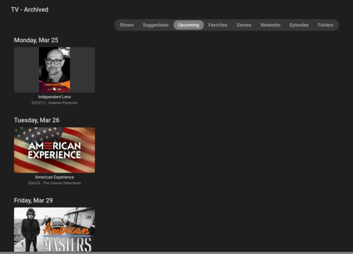 Luke 42077 Posted February 29, 2024 Posted February 29, 2024 Hi, the upcoming tab is for all TV libraries regardless of whether you have live TV or not. It is based on data from tvdb. There is currently no way to make it go away but we should probably have a way to do that.