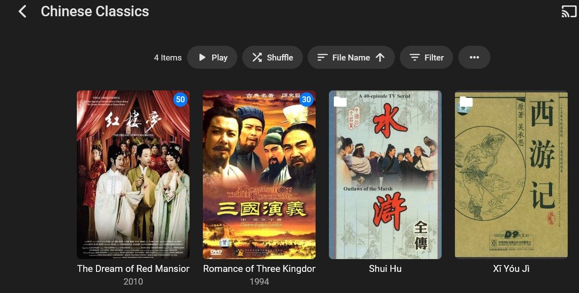 I have Emby Premier server running of a spare Linux machine and it works fine but there's one glitch. I have some movies grouped together into folders. For instance, I have a folder called "Chinese Classics" (pic1). Inside is a set of sub folders, one for each of the 4 movies. If I use the web interface to view the folder itself, the cover art for the folder show the cover of one of the sub folders (pic2). When I use Emby from my smart TV,  however, the folder does not show a picture, but instead the generic folder icon. Can anyone tell me why this is happening?