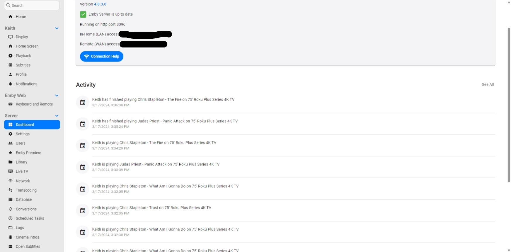 legierk 8 Posted March 17, 2024 Posted March 17, 2024 (edited) Hi guys. My problem is similiar to yours except that I am playing a FLAC audio (only) file. It is on a Roku TV and the app is the latest version. At any rate, the audio is like REEEAAAALLLY slow. Worse than playing a 45rpm record at 33rpm. Weird. As far as I can tell, this is the only file that is doing this. I think other FLAC files are fine....anyhow, just thought I'd throw this out there. This screen shot probably doesn't help, but this is from the server....there is no "error". The file plays, but it's like 1 second is about 5 seconds. (The Judas Priest is mp3 and played fine btw). PS. Thought I'd add that I am now playing the file via my Denon AVR network HEOS (I guess DLNA or something) and it works fine. Edited March 17, 2024 by legierk