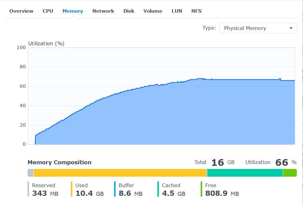 Statick 15 Posted May 29, 2024 Author Posted May 29, 2024 (edited) hey guys. I have increased the RAM in my synology to 16GB (it's supposed to be maximum 6GB but with the right RAM modules it will go higher) and updated to 4.9.0.22 beta I can now complete library scans, during the scan Emby RAM usage will increase to over 9GB before it completes, so it's no wonder I was unable to complete scans with only 6GB installed I have taken a screenshot of the RAM usage over time so you can see how it increases. it increases fairly steadily until the scan reaches around 60% at which point it still increases but more slowly (in the screenshot you can see the RAM usage goes down a bit before going back up again, roughly half way along the graph, this is at around 60-65% library scan). it then continues to increase at a slower rate until the scan hits 90%, then the usage remains constant until the scan completes. after the scan is completed, the RAM is returned to the system Edited May 29, 2024 by Statick