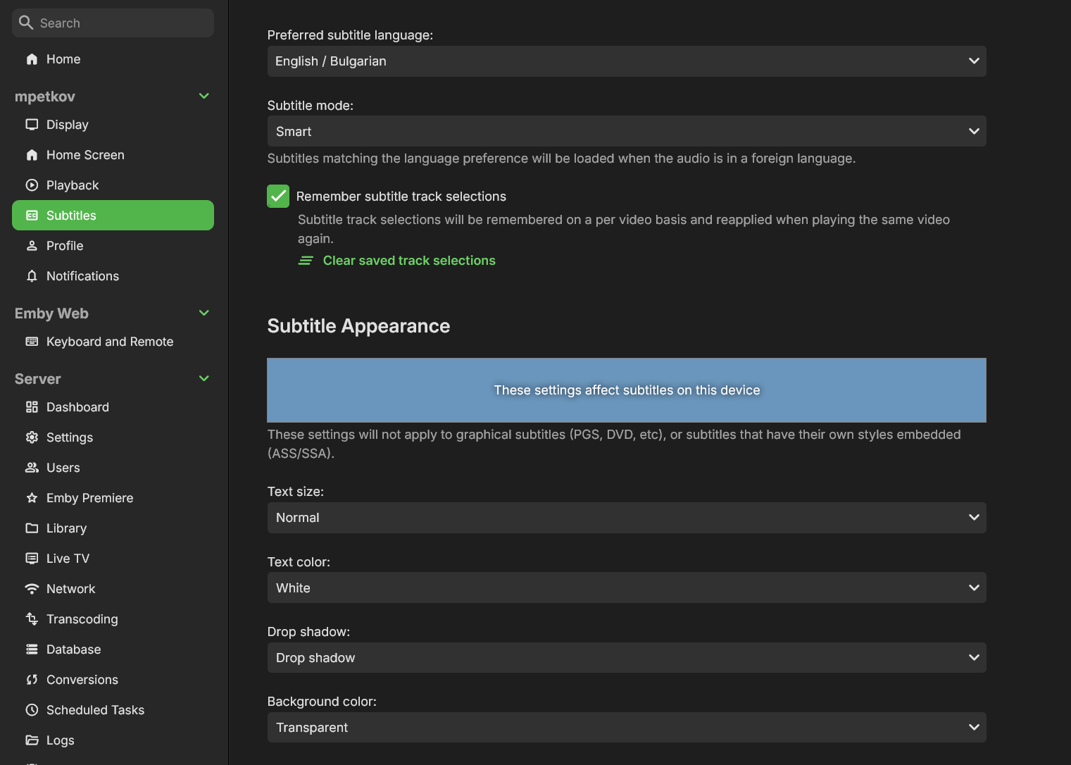 mpetkov 1 Posted May 1, 2024 Author Posted May 1, 2024 Hi, found it, it all works as intended now. I was looking only at the subtitle settings of the server and the subtitle settings that appear when playing a movie. My bad, thanks for the help! 1