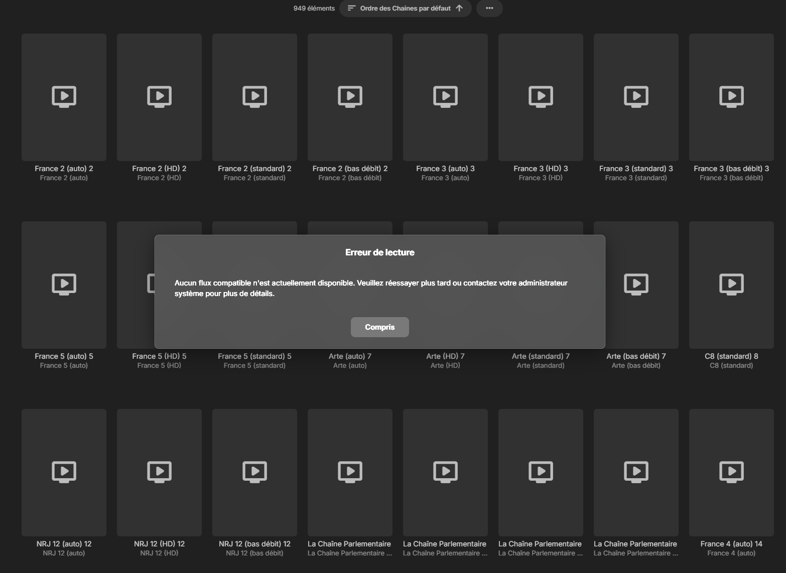 daaadou 1 Posted May 17, 2024 Author Posted May 17, 2024 Hey I loooked up and found this list https://receptioniptv.blogspot.com/2021/01/bouquet-de-chaines-tv-francaises.html It is composed from some http link and it is working, 720p only but at least, I know what to look for.