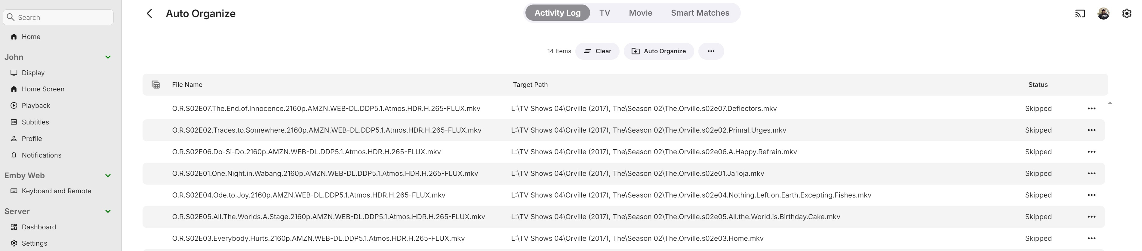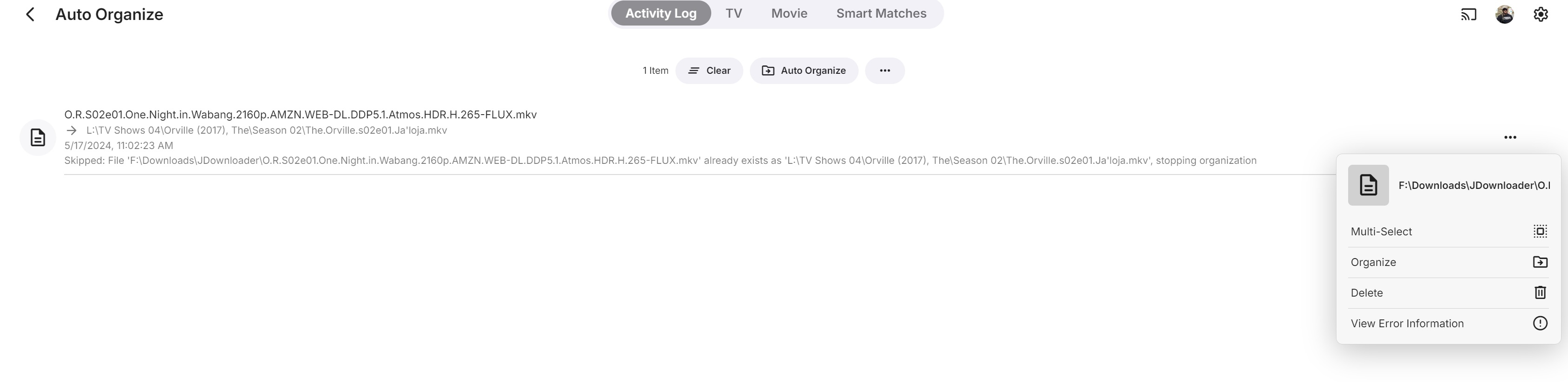 diaz1510 154 Posted May 17, 2024 Author Posted May 17, 2024 (edited) 1 hour ago, Luke said: Given that the naming of O.R. is not obvious, I would say your best bet is to use the 3-dot menu to select the option to organize manually. sigh....yes...I already tried that. Unless I am completely missing a DIFFERENT set of 3 dots. When I select "organize" from the 3 dots, it just gives me the option to file it under "The Orville" and I don't get any option to select anything different. So what am I missing here? I'm never given the opportunity to select a different series. And I know the error is because episode 1 of season 2 for The Orville already exists and I have Emby setup to skip episodes that already exist. Edited May 17, 2024 by diaz1510
