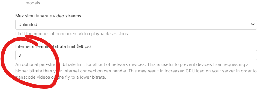 mbc0 68 Posted June 9, 2024 Author Posted June 9, 2024 Hi, Not had a chance to look at this but still having issues unfortunately, This is the current situation as my parents are watching now despite manually setting the user to 3mb/s I have manually set their user to 3mb/s (pic below) Emby Global settings are also set to 3 (pic below) all other users obey this global setting so any idea how I can fix this?