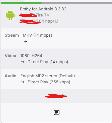 mbc0 68 Posted June 9, 2024 Author Posted June 9, 2024 Just found this in the log 2024-06-09 10:12:30.076 Info App: User policy for bryde4. EnablePlaybackRemuxing: True EnableVideoPlaybackTranscoding: True EnableAudioPlaybackTranscoding: True 2024-06-09 10:12:30.076 Info App: RemoteClientBitrateLimit: 3000000, RemoteIp: host5, IsInLocalNetwork: False 2024-06-09 10:12:30.076 Info App: Bitrate exceeds DirectPlay limit: media bitrate: 6381883, max bitrate: 3000000 2024-06-09 10:12:30.076 Info App: Bitrate exceeds DirectStream limit: media bitrate: 6381883, max bitrate: 3000000 2024-06-09 10:12:30.077 Info App: RemoteClientBitrateLimit: 3000000, RemoteIp: host5, IsInLocalNetwork: False 2024-06-09 10:12:30.077 Info App: Bitrate exceeds DirectPlay limit: media bitrate: 6381883, max bitrate: 3000000 2024-06-09 10:12:30.077 Info App: Bitrate exceeds DirectStream limit: media bitrate: 6381883, max bitrate: 3000000 2024-06-09 10:12:30.077 Info App: RemoteClientBitrateLimit: 3000000, RemoteIp: host5, IsInLocalNetwork: False 2024-06-09 10:12:30.077 Info Server: http/1.1 Response 200 to host5. Time: 20ms. POST http://host4:8096/emby/Items/1074050/PlaybackInfo?UserId=25f305c44113447388479c94337ce180&StartTimeTicks=0&IsPlayback=false&AutoOpenLiveStream=false&MaxStreamingBitrate=734003200&X-Emby-Client=Emby for Android&X-Emby-Device-Name=Bryan's Fire TV&X-Emby-Device-Id=8f004588af3db658&X-Emby-Client-Version=3.3.82&X-Emby-Token=x_secret1_x&X-Emby-Language=en-gb&reqformat=json