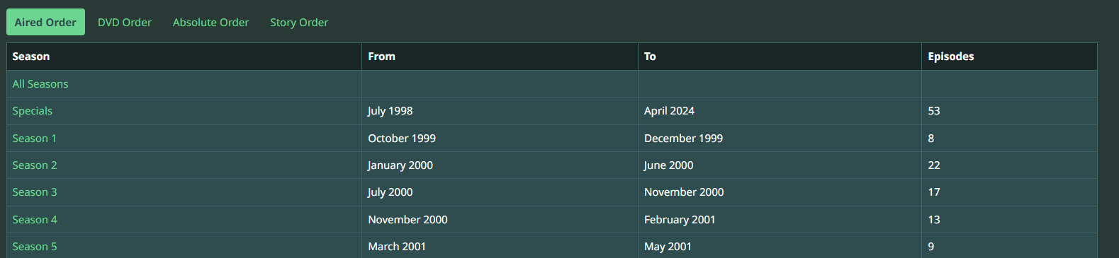 Happy2Play 9780 Posted May 26, 2024 Posted May 26, 2024 Testing specials does not work and ignores S00Exx and readd Exx and multi-versions, as per provider metadata there is no S00. So Absolute will not add Specials correctly if they are number order. Looks okay here But those 53 as duplicates of the first 53 episodes. requiring manual edit on every special. But have not run into a scenario that episodes are not identified with metadata. 1
