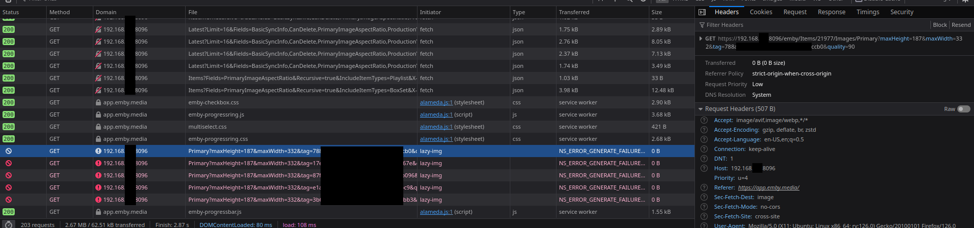 iissmart 0 Posted May 26, 2024 Author Posted May 26, 2024 Just checked the firefox debug console, and yes it shows that it's accessing the lan address when trying to retrieve the images. Mixed Content: Upgrading insecure display request ‘http://192.168.x.y:8096/emby/Items/22530/Images/Primary?maxHeight=298&maxWidth=198&tag=abcd&quality=90’ to use ‘https’ I guess it probably can't try accessing the lan address over HTTPS since the certificate wouldn't match the address. It's still odd that putting that 192.168.x.y address into the exception list doesn't cause it to work. Maybe there's some other setting in firefox about how to handle mixed content like this?